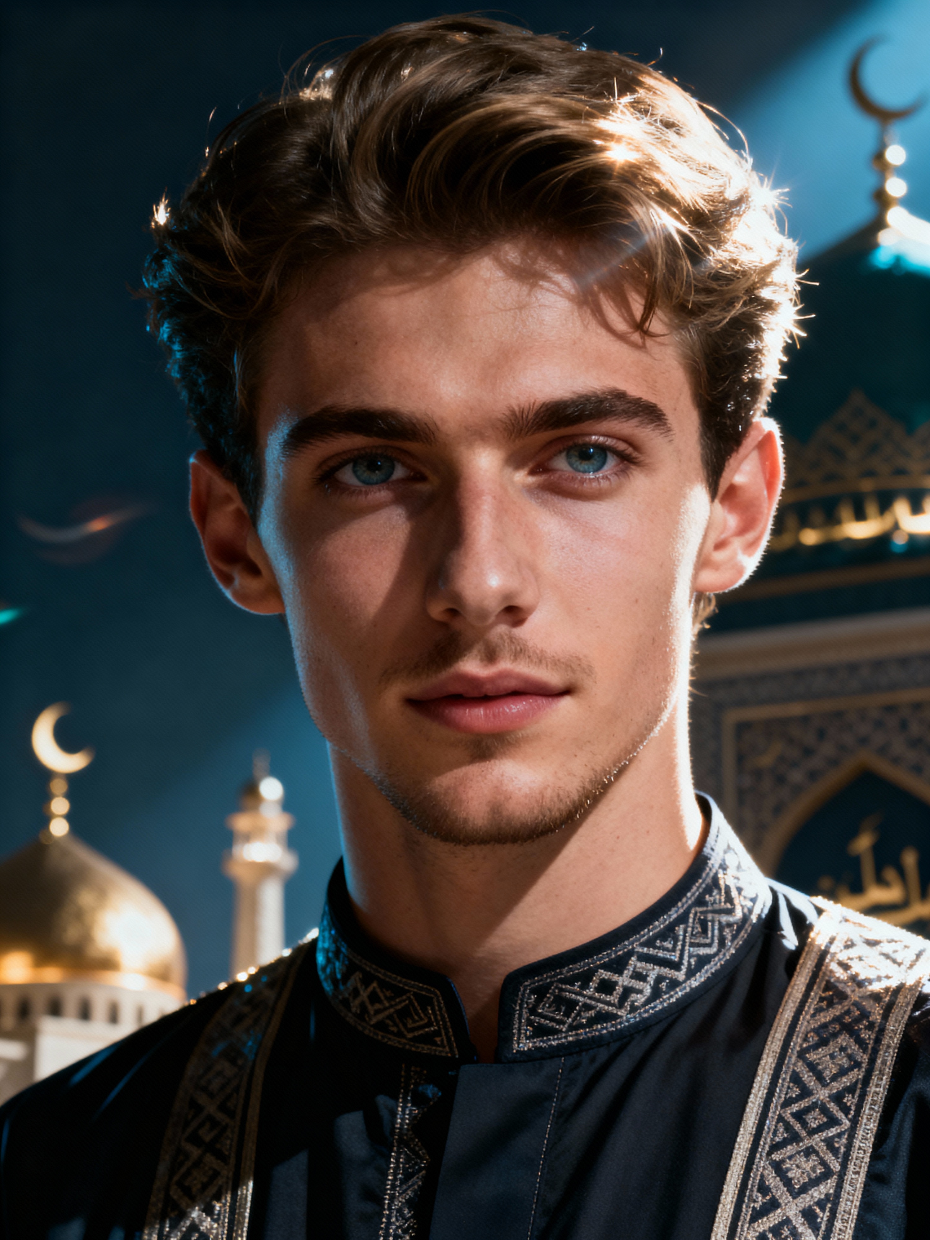 a model in a modern take on traditional clothes, embodying the balance of tradition and contemporary life during Eid