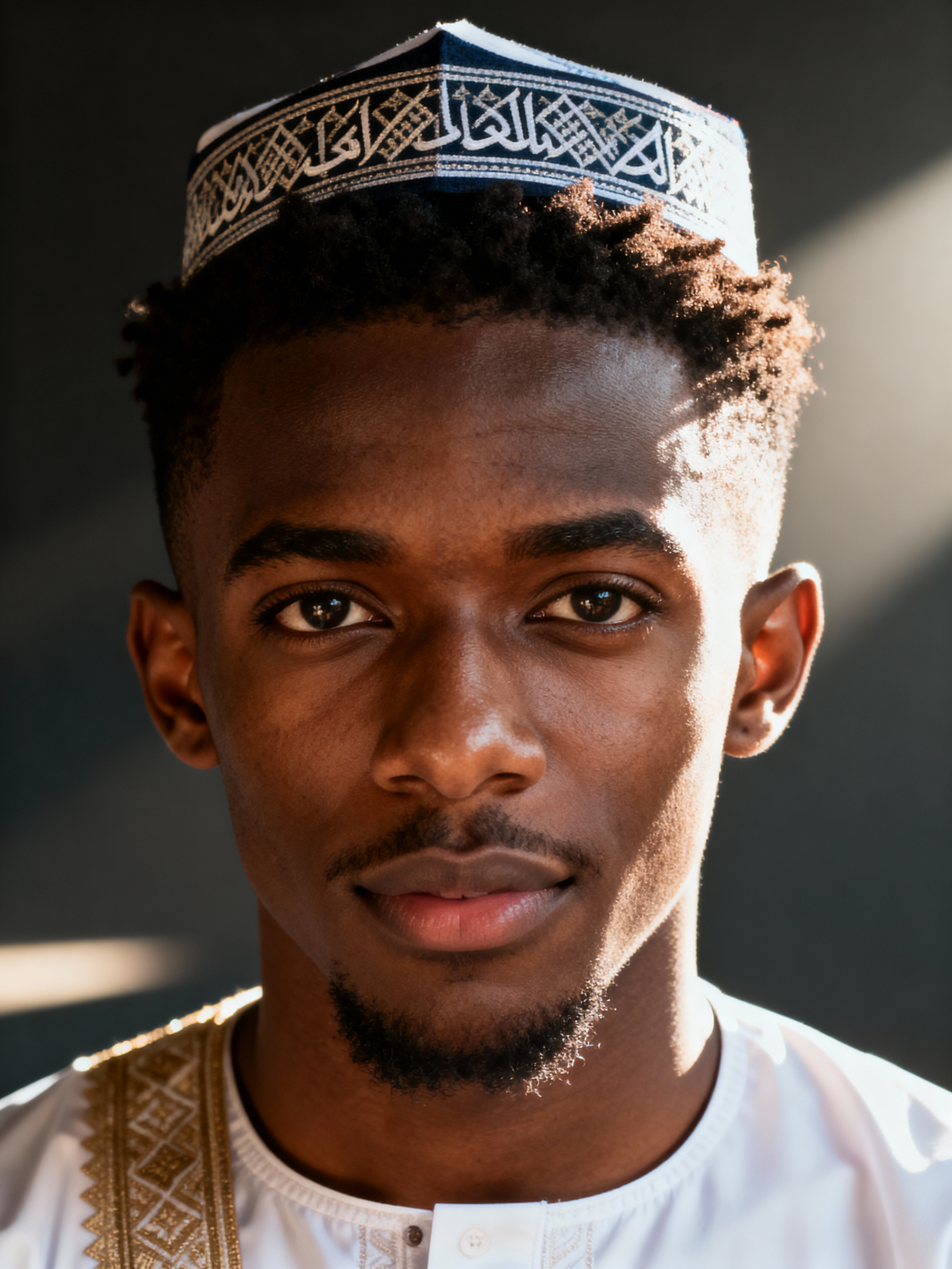 a model in a modern take on traditional clothes, embodying the balance of tradition and contemporary life during Eid