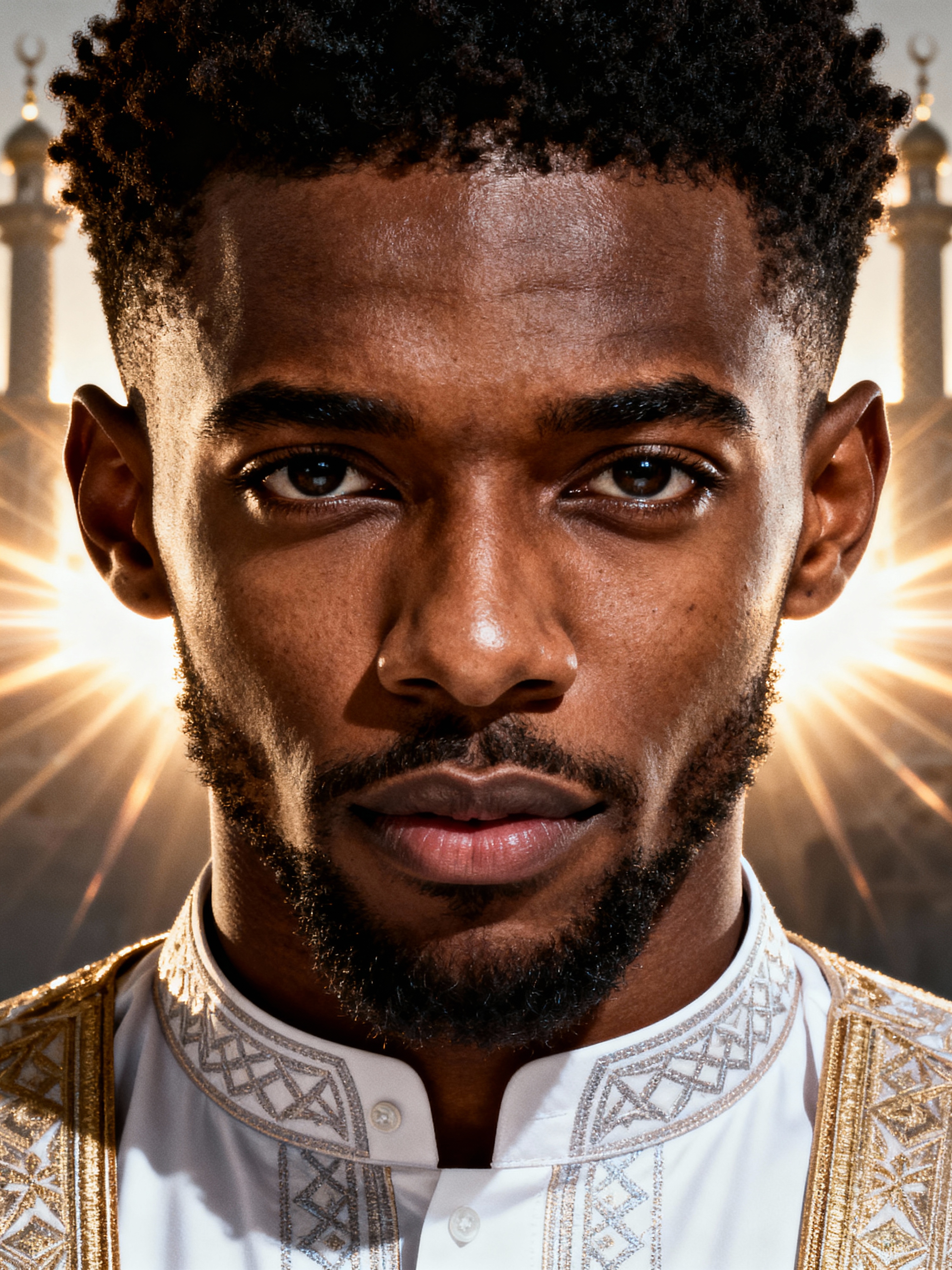 a model in a modern take on traditional clothes, embodying the balance of tradition and contemporary life during Eid