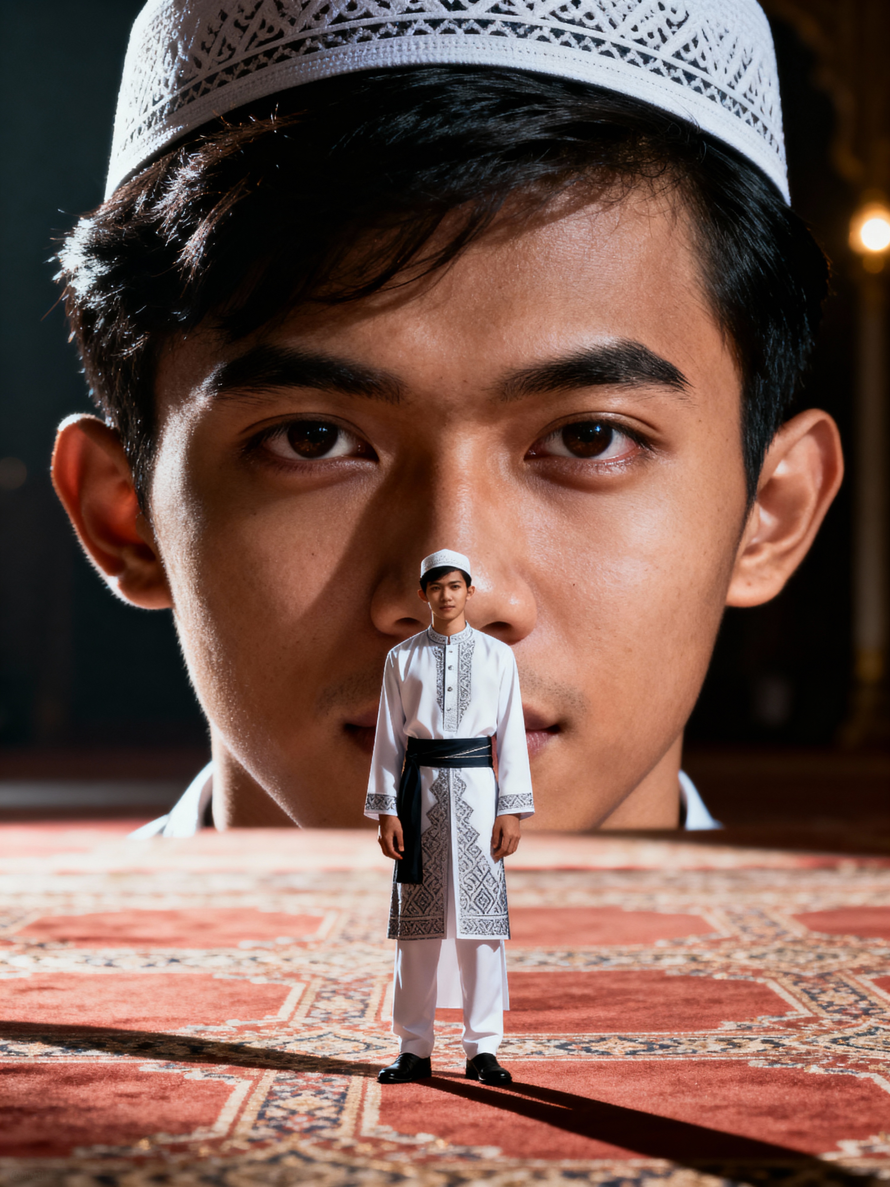 a model in a modern take on traditional clothes, embodying the balance of tradition and contemporary life during Eid