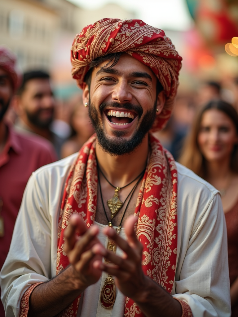 a model in traditional Eid clothes, capturing their joyful energy during the celebrations, with henna designs and festive decorations