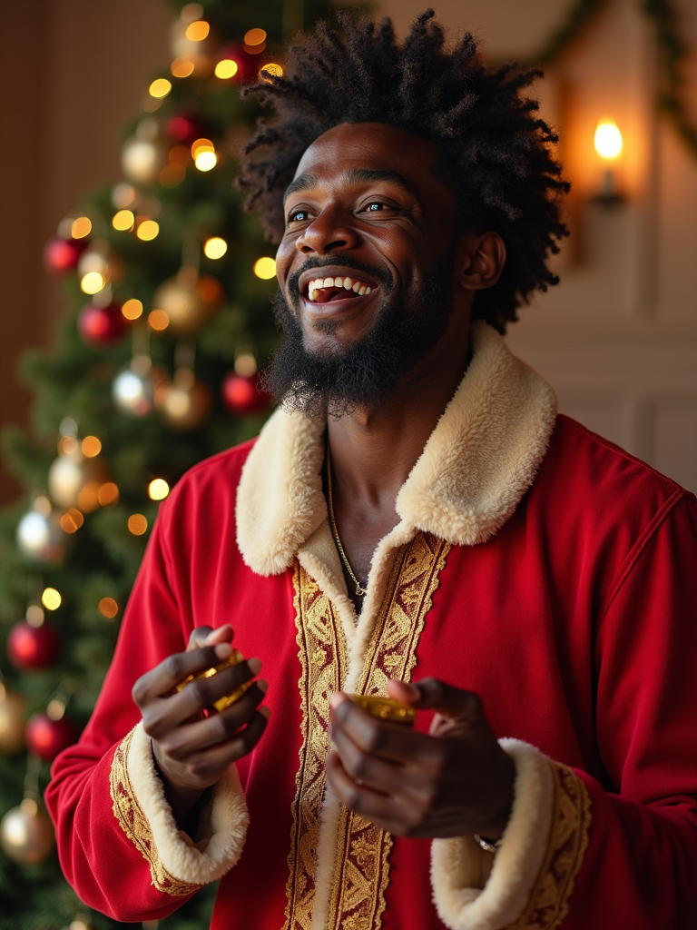 a model in traditional holiday clothes, capturing their joyful energy during Hanukkah celebrations, with dreidels and gelt decorations