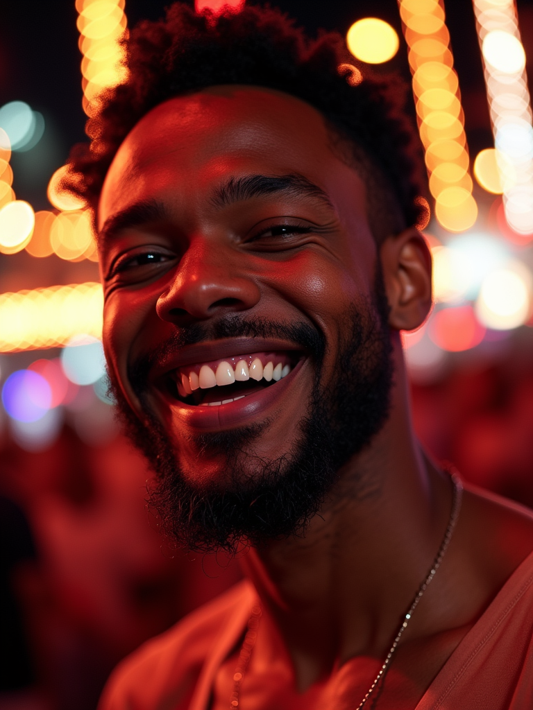a model with face with a joyful expression amid festival lights, capturing the excitement that defines this important cultural celebration