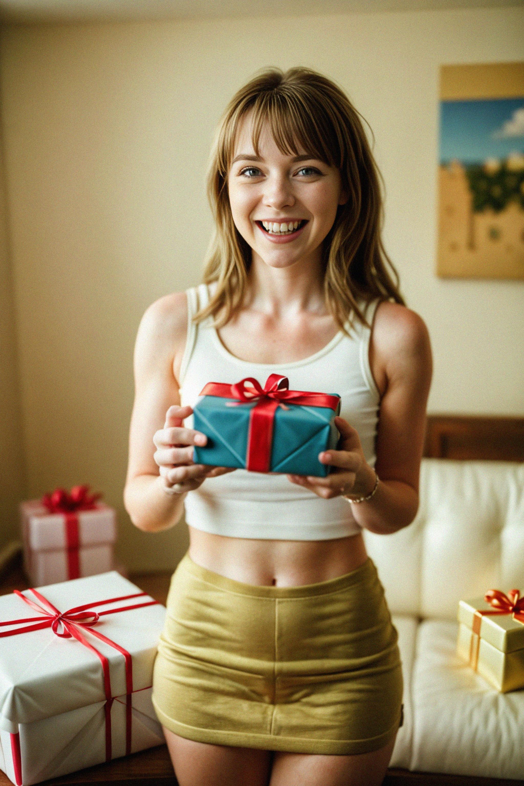 a person opening birthday presents with a big smile of delight and surprise, showcasing the joy of receiving thoughtful gifts