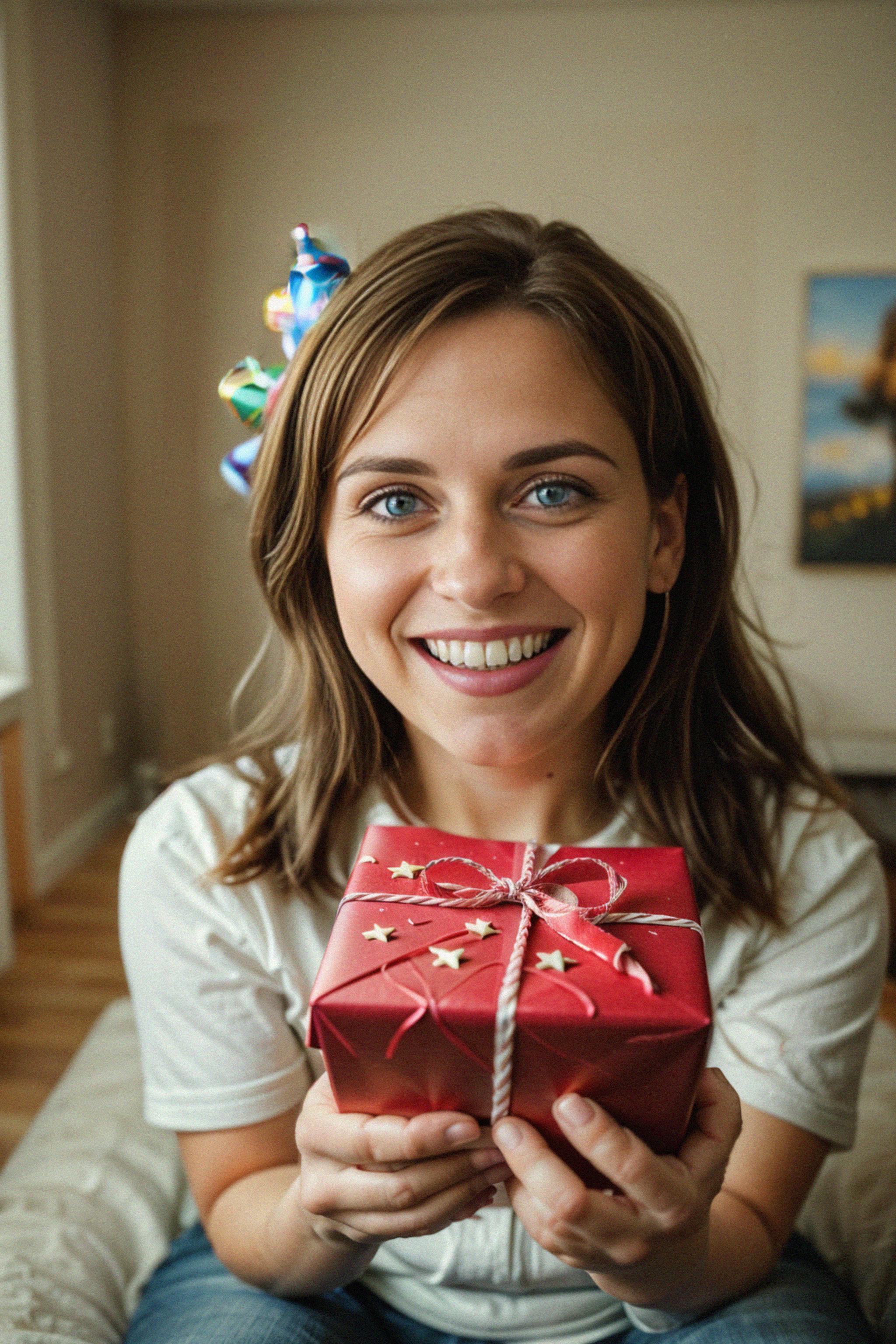 a person opening birthday presents with a big smile of delight and surprise, showcasing the joy of receiving thoughtful gifts