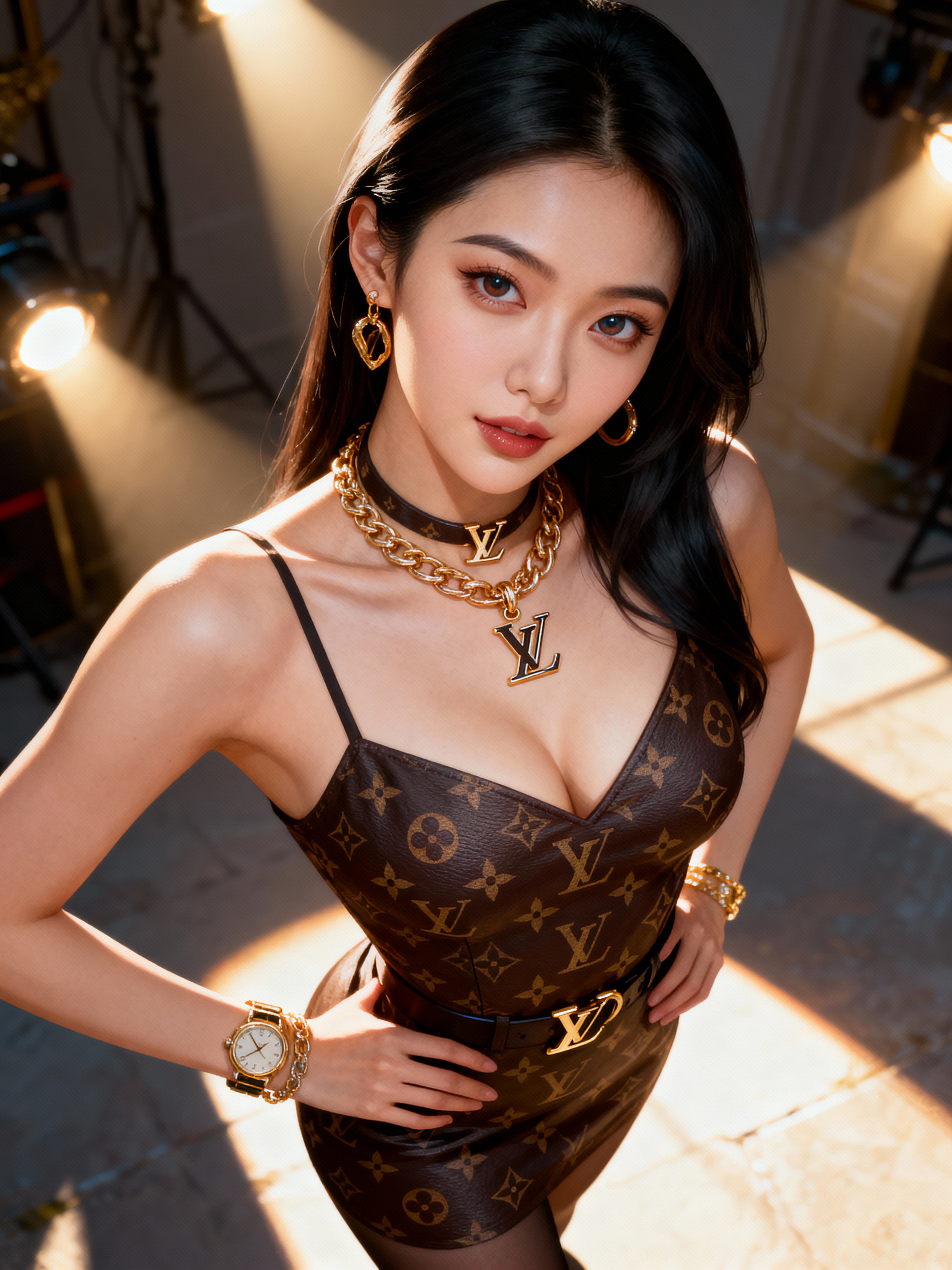 a pin up as a beautiful fashion charming dreamlike model with lv jewelry, character art, art by artgerm lau and wlop and and ilya kuvshinov and john singer sargent, hyperdetailed, 8 k realistic, symmetrical, frostbite 3 engine, cryengine, dof, trending on artstation, digital art