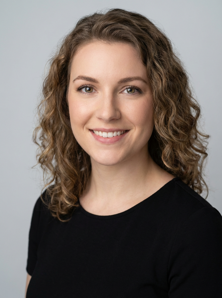 A professional actor headshot of a confident model, taken in a well-lit studio with a plain backdrop. The model is dressed in a simple, elegant black top with natural makeup and soft curls . The lighting is soft and even, highlighting their facial features with a natural and approachable expression. The focus is sharp, capturing the model's eyes and subtle smile, creating a perfect headshot for auditions and casting calls.