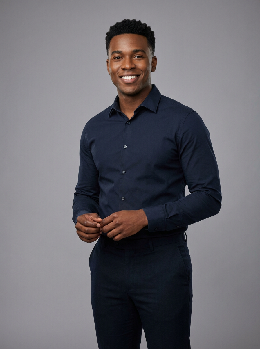 A professional comedian headshot taken in a well-lit studio with a clean, neutral backdrop. The model is dressed in a fitted button-up shirt or a casual jacket with neatly styled hair, ensuring a polished yet approachable look. The lighting is soft and even, highlighting the model\'s expressive face, charisma, and subtle comedic charm. The focus is sharp, capturing a warm and inviting expression, creating the perfect headshot for stand-up comedians, improv actors, and comedic performers.