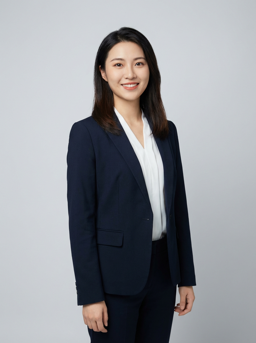 A professional lawyer headshot of a confident model, taken in a well-lit studio with a plain backdrop. The model is dressed in a tailored blazer with a crisp blouse and a confident smile . The lighting is soft and even, highlighting their facial features with a professional and authoritative expression. The focus is sharp, capturing the model's eyes and engaging smile, creating a perfect headshot for law firm profiles and professional branding.