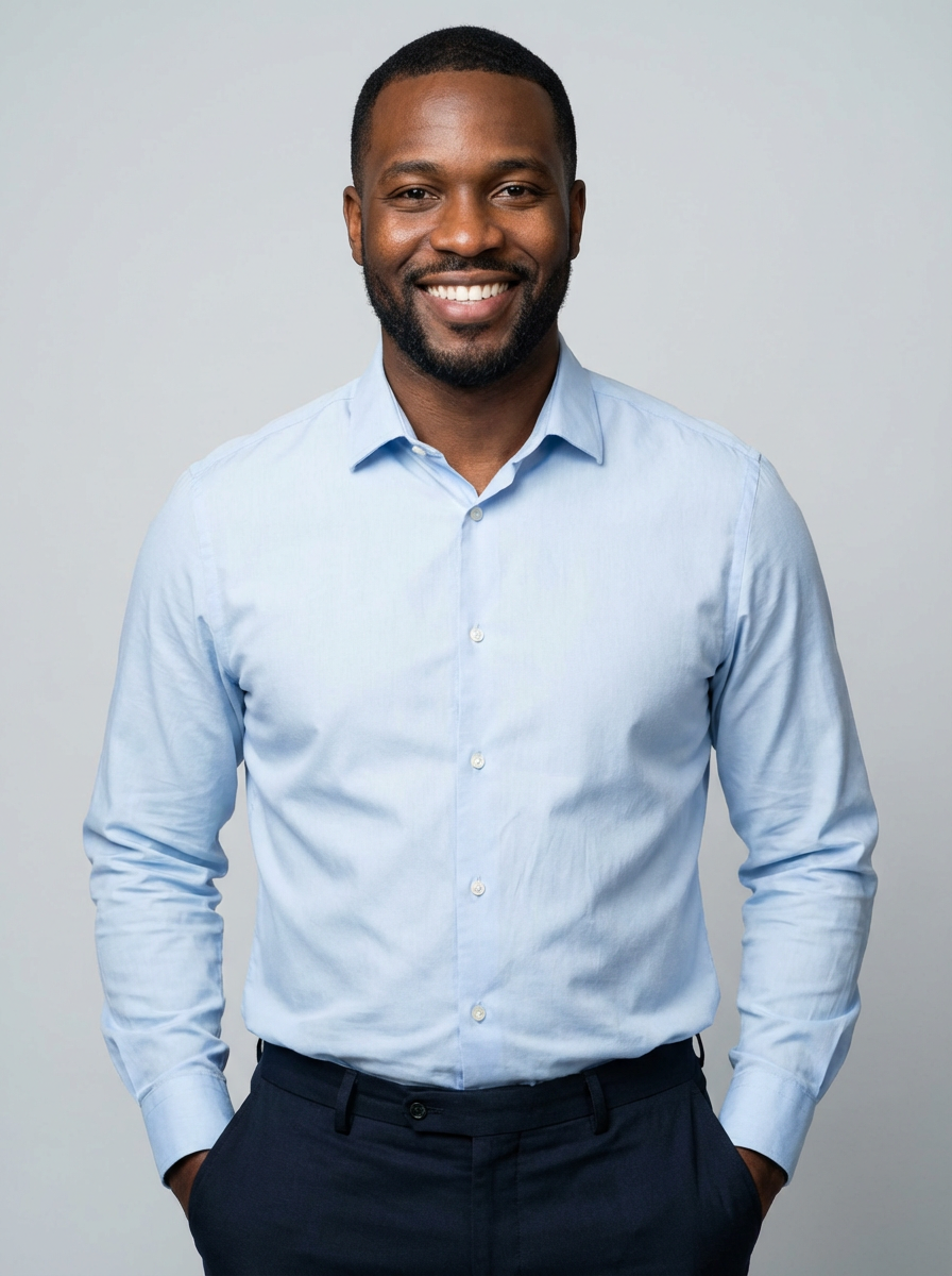 A professional life coach headshot of an inspiring model, taken in a well-lit studio with a plain backdrop. The model is dressed in a neat, light-colored shirt with a motivational expression. The lighting is soft and even, highlighting their facial features with a warm and encouraging expression. The focus is sharp, capturing the model's eyes and uplifting smile, creating a perfect headshot for coaching practices and professional profiles.