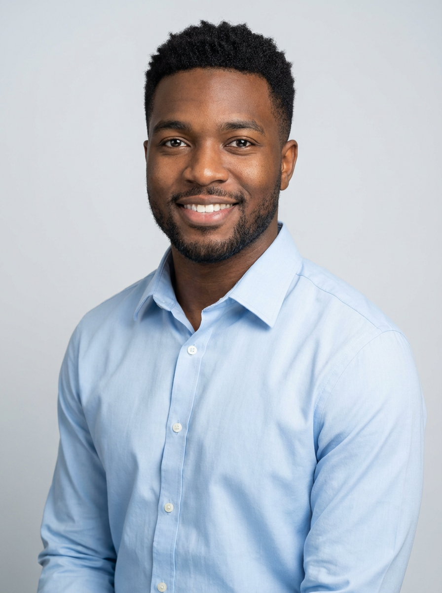 A professional life coach headshot of an inspiring model, taken in a well-lit studio with a plain backdrop. The model is dressed in a neat, light-colored shirt with a motivational expression. The lighting is soft and even, highlighting their facial features with a warm and encouraging expression. The focus is sharp, capturing the model's eyes and uplifting smile, creating a perfect headshot for coaching practices and professional profiles.