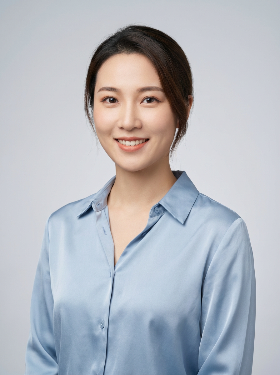 A professional life coach headshot of an inspiring model, taken in a well-lit studio with a plain backdrop. The model is dressed in a soft, professional blouse with natural makeup and a confident smile . The lighting is soft and even, highlighting their facial features with a warm and encouraging expression. The focus is sharp, capturing the model's eyes and uplifting smile, creating a perfect headshot for coaching practices and professional profiles.