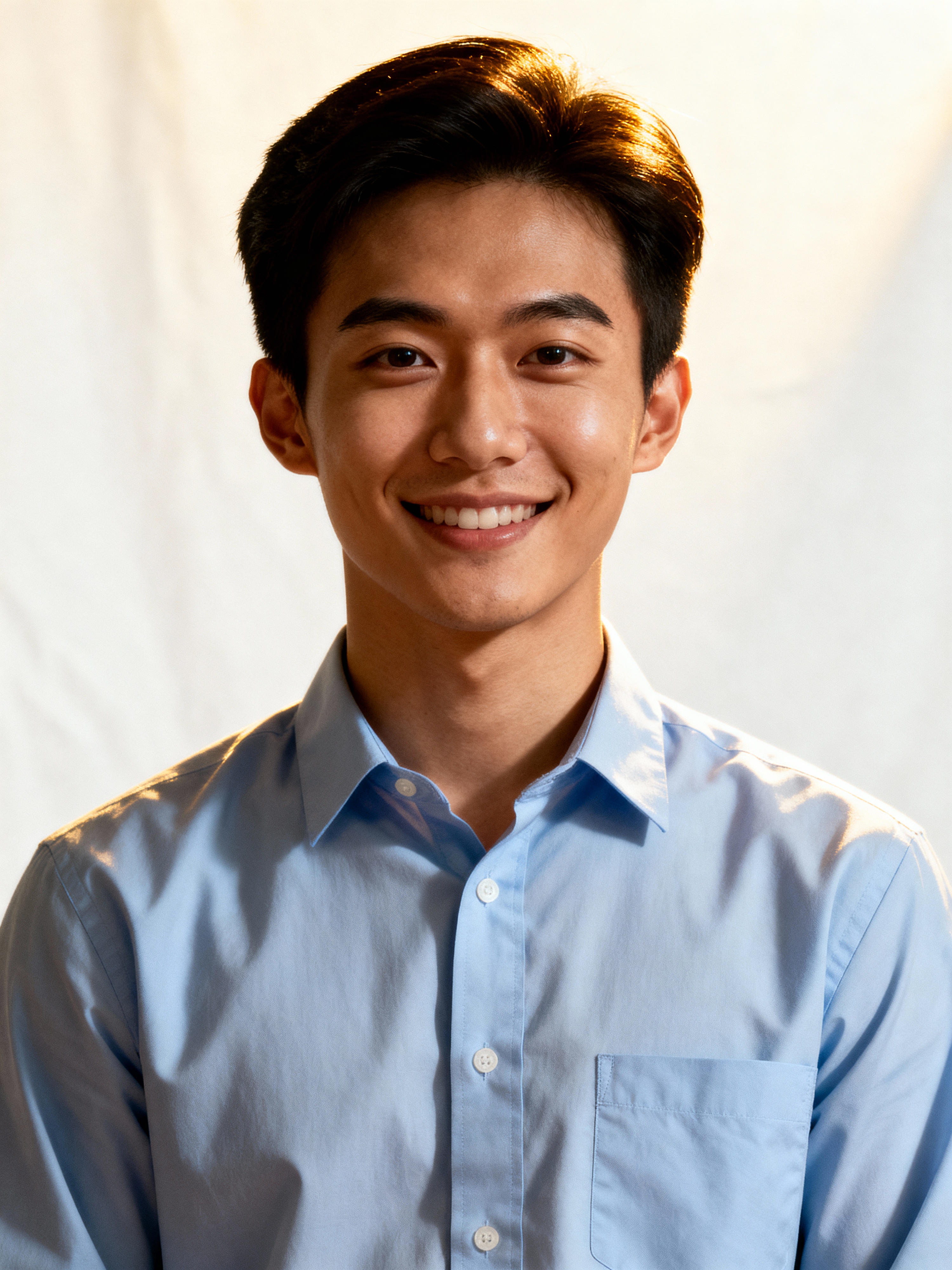 A professional therapist headshot of a compassionate model, taken in a well-lit studio with a plain backdrop. The model is dressed in a neat, light-colored shirt with a friendly expression. The lighting is soft and even, highlighting their facial features with a warm and approachable expression. The focus is sharp, capturing the model's eyes and reassuring smile, creating a perfect headshot for therapy practices and professional profiles.