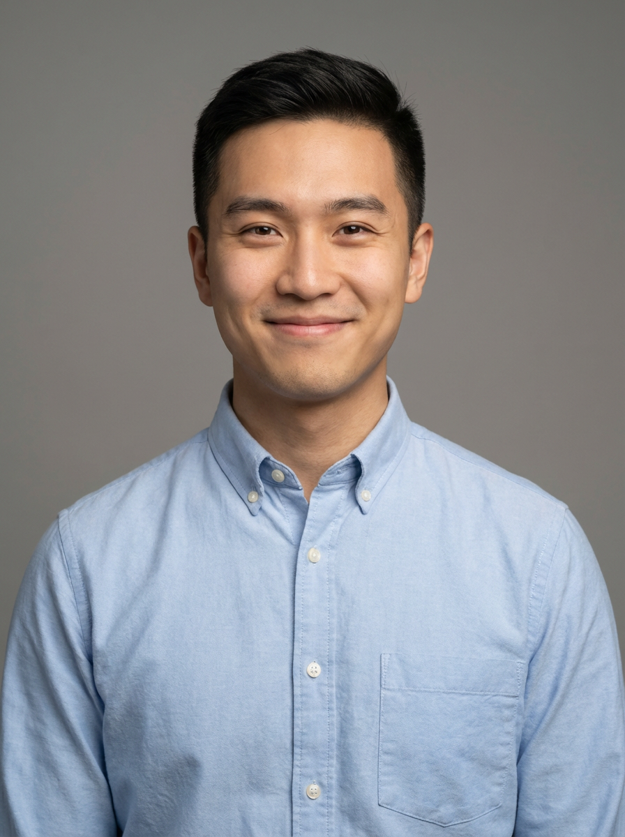 A professional therapist headshot of a compassionate model, taken in a well-lit studio with a plain backdrop. The model is dressed in a neat, light-colored shirt with a friendly expression. The lighting is soft and even, highlighting their facial features with a warm and approachable expression. The focus is sharp, capturing the model's eyes and reassuring smile, creating a perfect headshot for therapy practices and professional profiles.