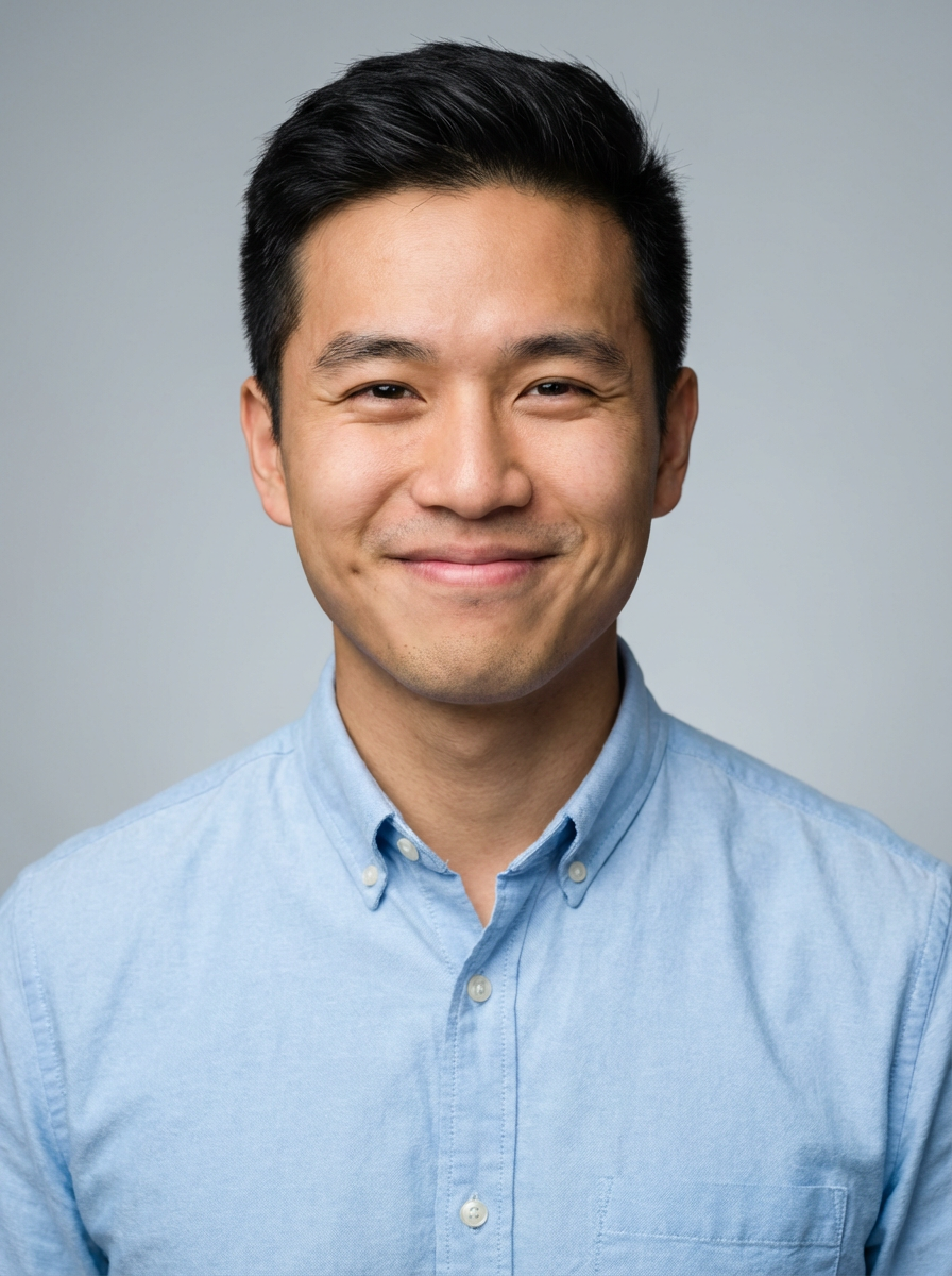 A professional therapist headshot of a compassionate model, taken in a well-lit studio with a plain backdrop. The model is dressed in a neat, light-colored shirt with a friendly expression. The lighting is soft and even, highlighting their facial features with a warm and approachable expression. The focus is sharp, capturing the model's eyes and reassuring smile, creating a perfect headshot for therapy practices and professional profiles.