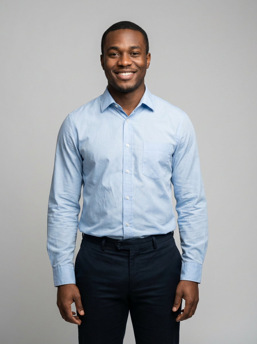 A professional therapist headshot of a compassionate model, taken in a well-lit studio with a plain backdrop. The model is dressed in a neat, light-colored shirt with a friendly expression. The lighting is soft and even, highlighting their facial features with a warm and approachable expression. The focus is sharp, capturing the model's eyes and reassuring smile, creating a perfect headshot for therapy practices and professional profiles.