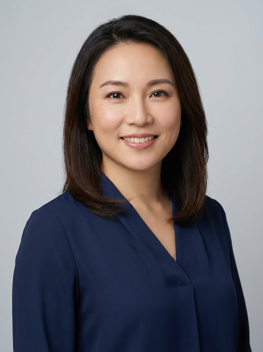A professional therapist headshot of a compassionate model, taken in a well-lit studio with a plain backdrop. The model is dressed in a soft, professional blouse with natural makeup and a gentle smile . The lighting is soft and even, highlighting their facial features with a warm and approachable expression. The focus is sharp, capturing the model's eyes and reassuring smile, creating a perfect headshot for therapy practices and professional profiles.