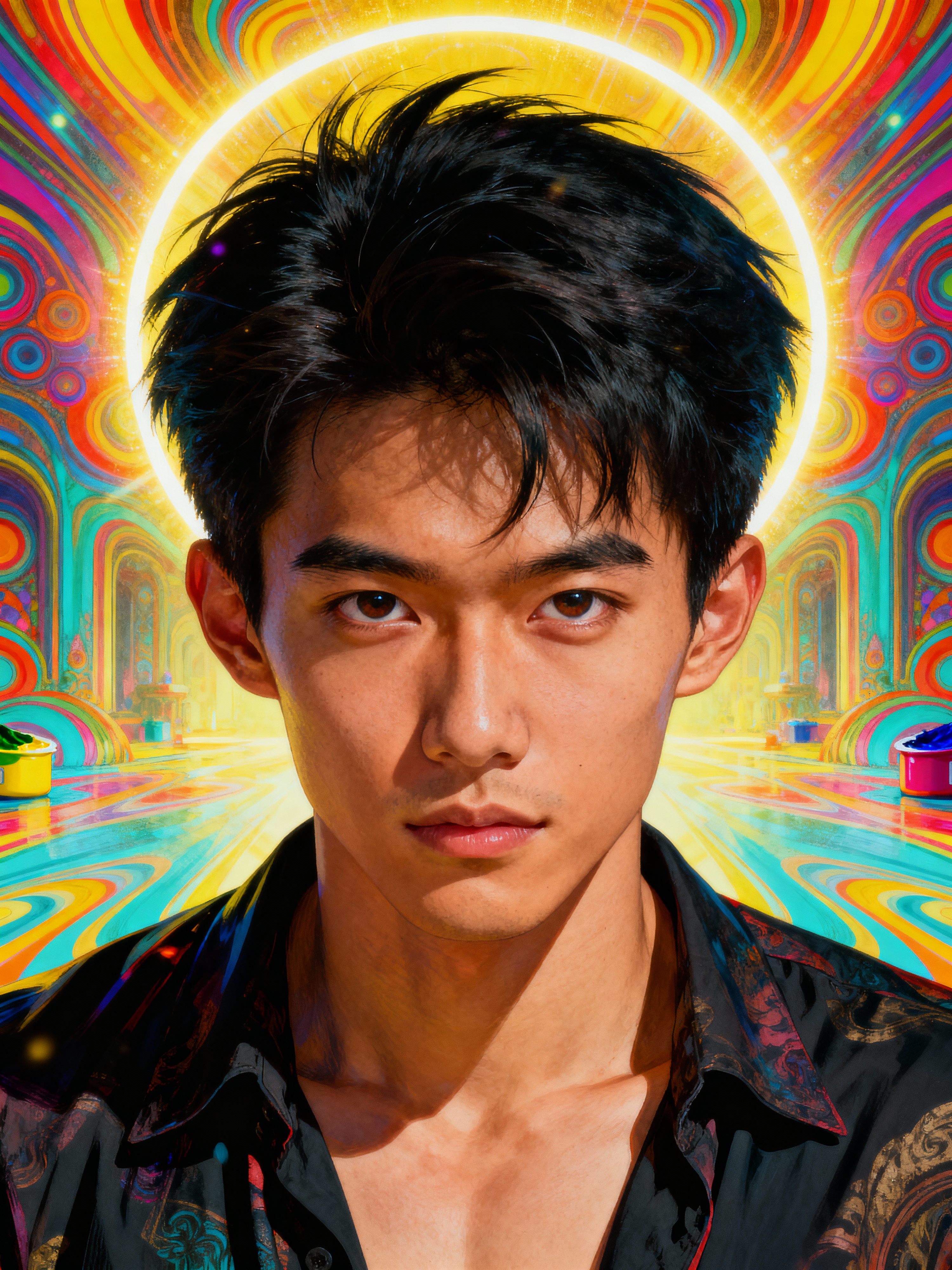 A psychedelic shot of model, vibrant color scheme, in the style of romanticism, cinematic, artstation, Moebius, Greg rutkowski