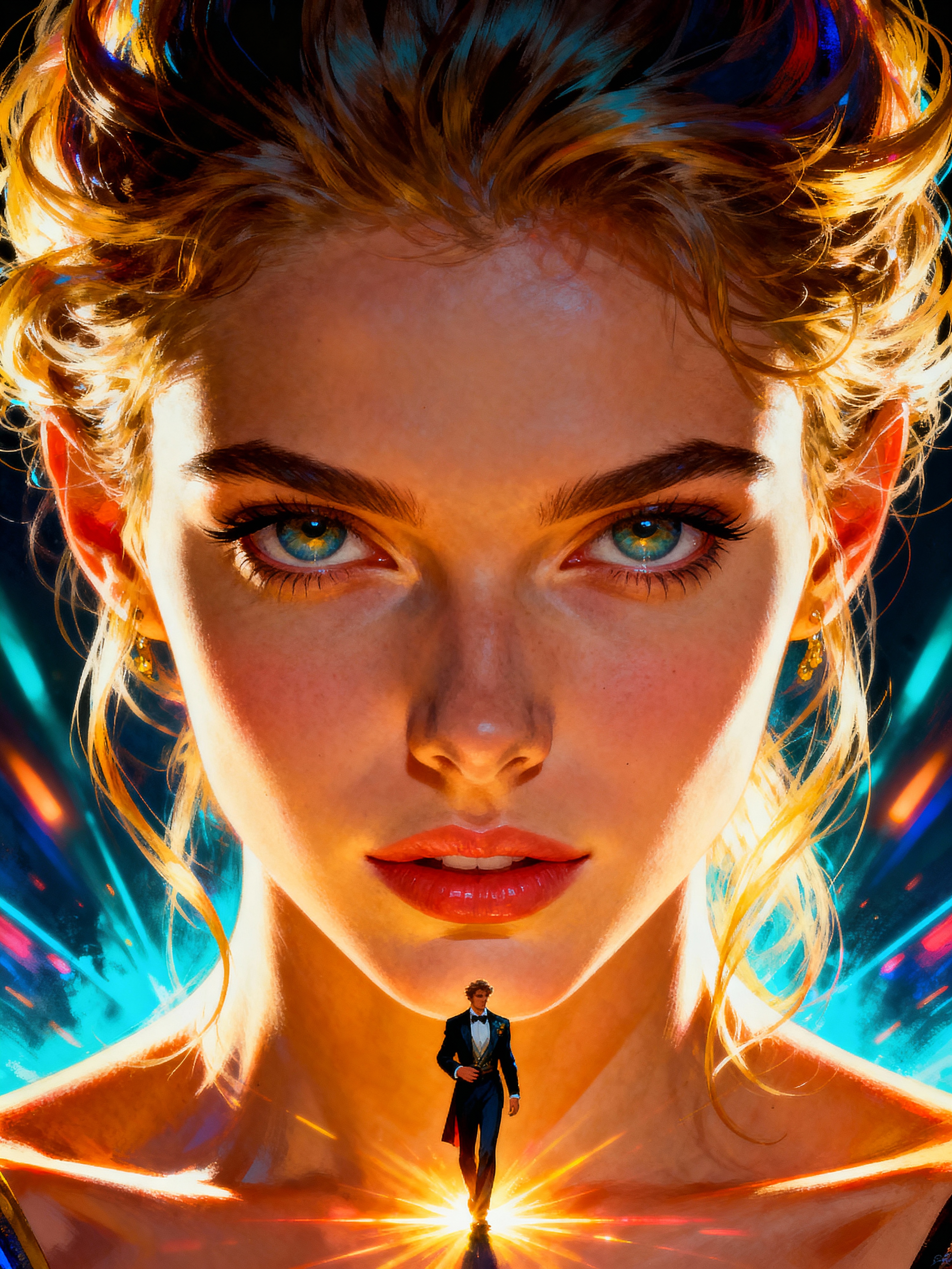 A psychedelic shot of model, vibrant color scheme, in the style of romanticism, cinematic, artstation, Moebius, Greg rutkowski