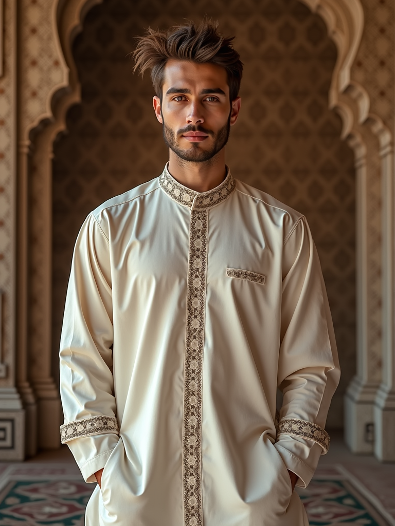 Related photosa man with  a joyful look while giving Eidi to children, adding a festive quality to their Eid celebration, with soft golden lights and crescent moon decorations visible in the backgrounda man in  a modern take on traditional clothes, embodying the balance of tradition and contemporary life during Eida stunning man surrounded by  traditional lanterns and Islamic art, capturing the sense of joy and family connection during the holidayclose-up of Model sporting winged eyeliner and matte skin finish. set against a soft, pastel backgroundwoman blowing bubbles. all around her are floating bubbles. many bubbles floating. the bubbles reflect her face. she stands in a sunlit field.woman in  a bikini under a waterfall, wet hair