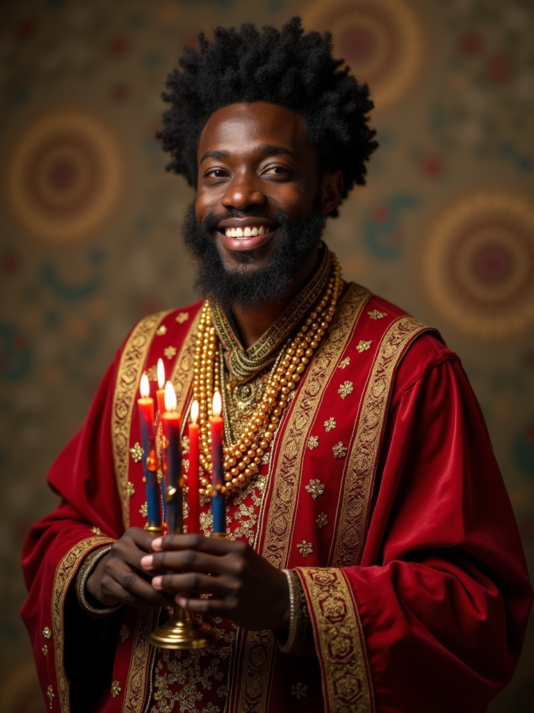 a stunning model in traditional attire with holiday symbols, embodying the resilience and faith celebrated during Hanukkah