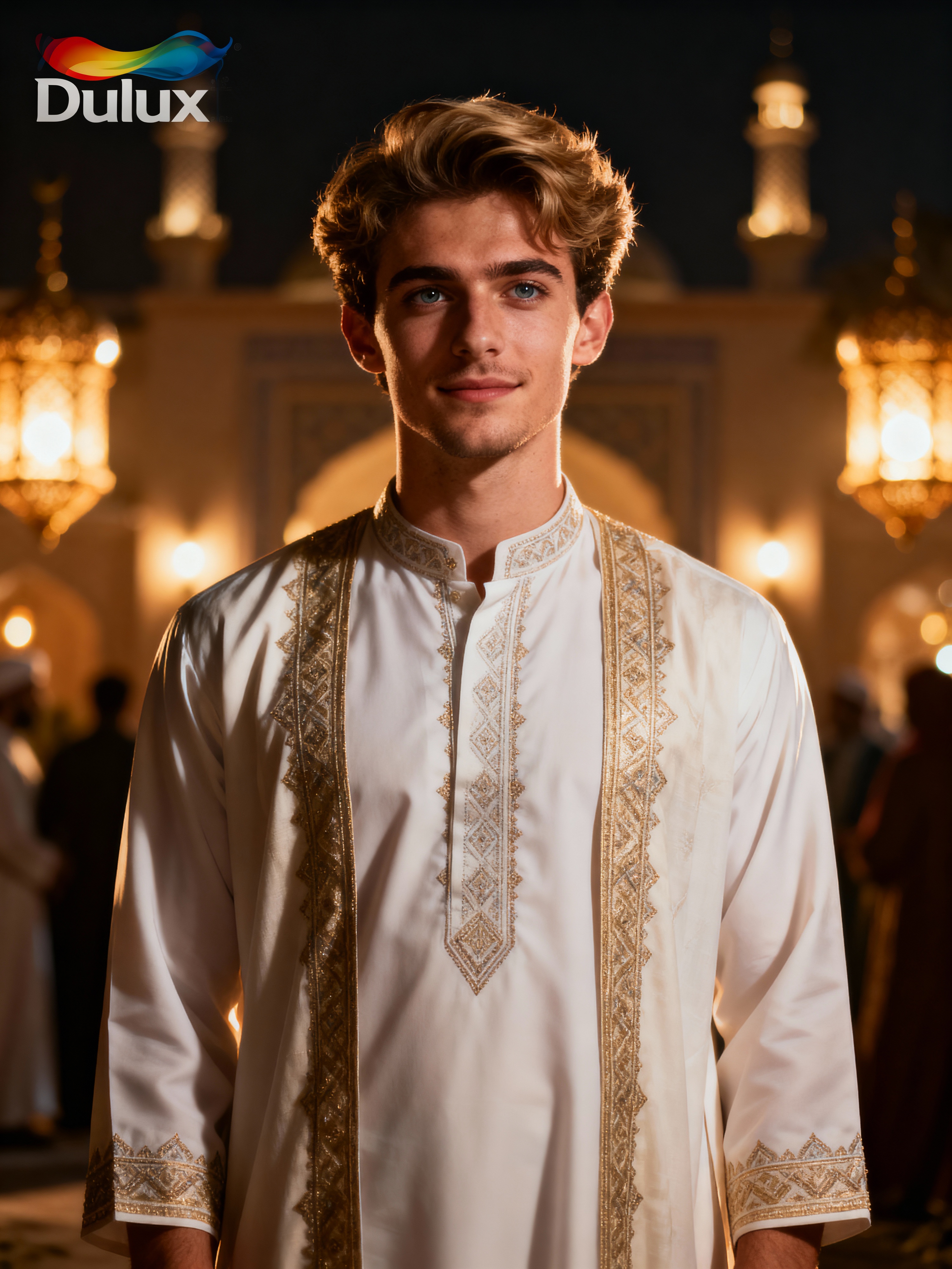 a stunning model in traditional Eid attire, embodying the joy and gratitude of the holiday