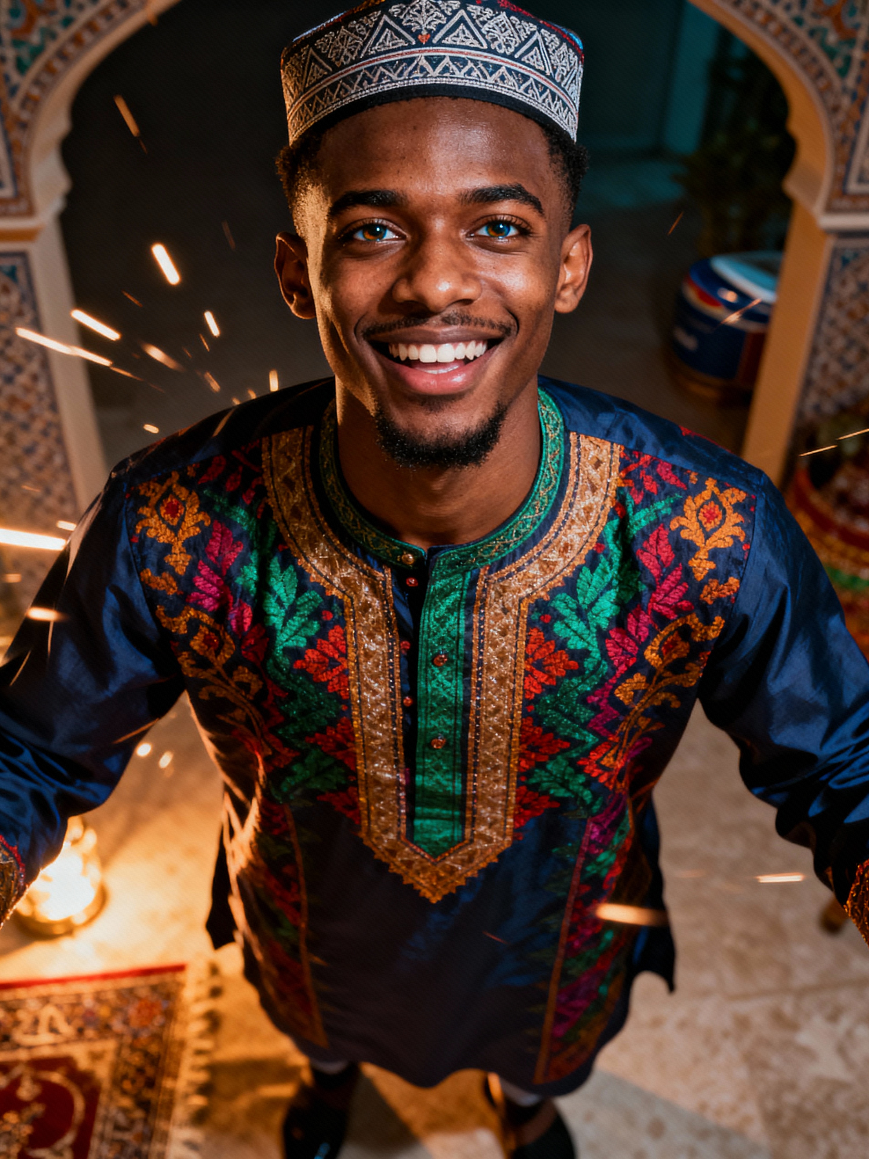 a stunning model in traditional Eid attire, embodying the joy and gratitude of the holiday