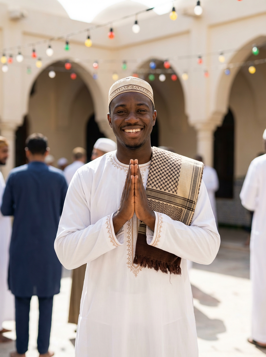 a stunning model in traditional Eid attire, embodying the joy and gratitude of the holiday