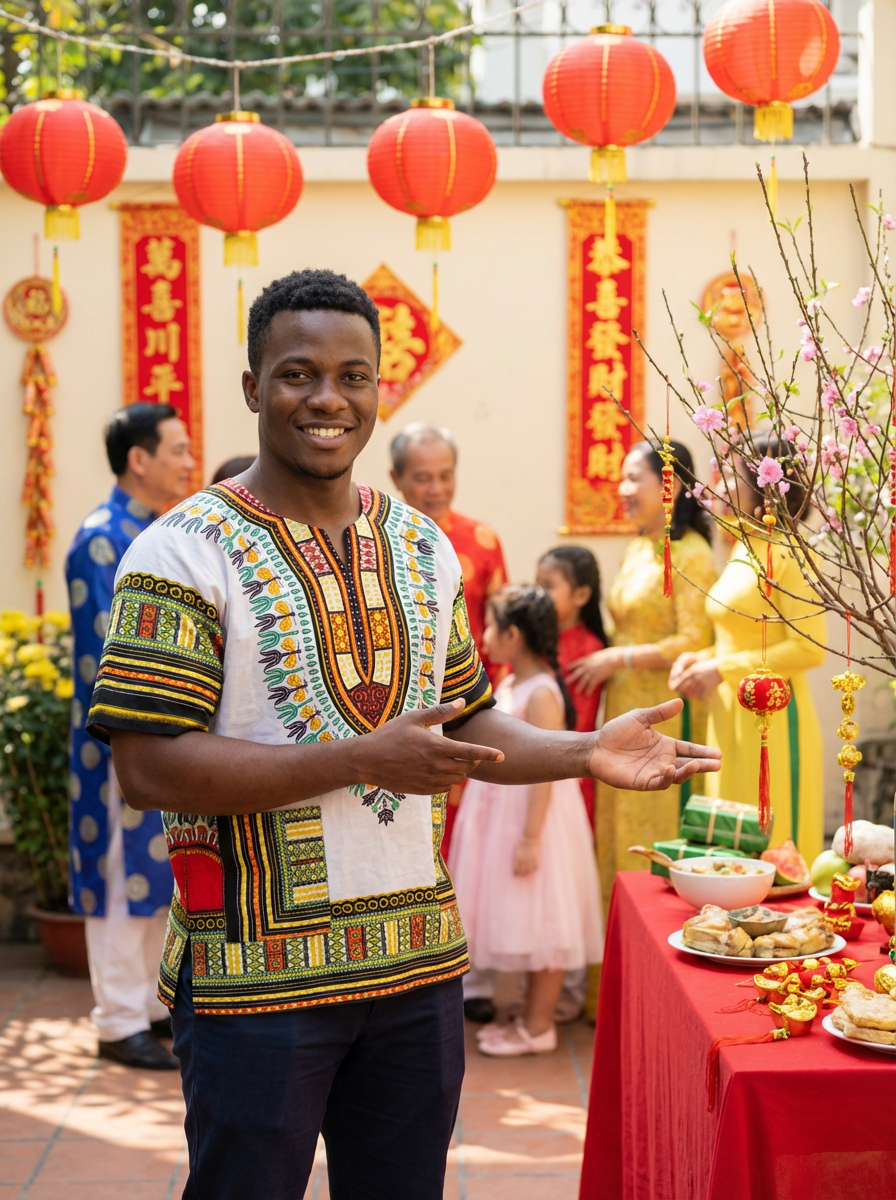 a stunning model surrounded by traditional decorations and symbols, capturing the sense of renewal and family connection during the Spring Festival