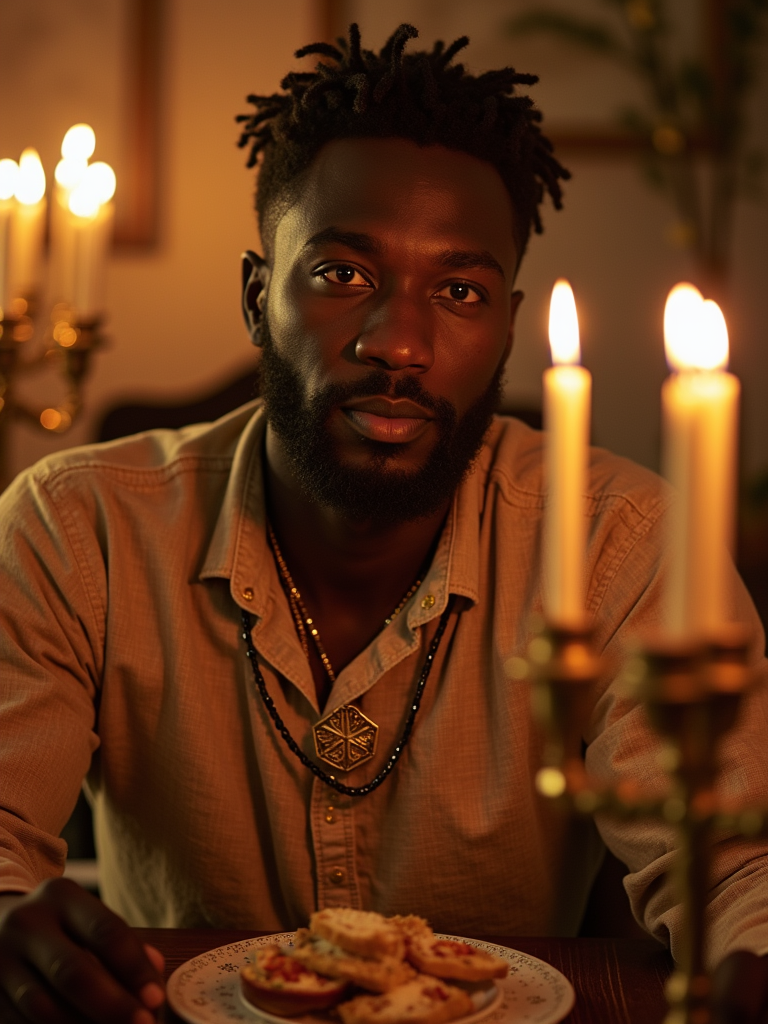 a stunning model surrounded by traditional symbols and menorahs, capturing the sense of miracle and family connection during the Festival of Lights