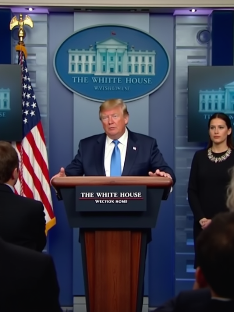 a u.s. government press briefing with a white house spokesperson addressing concerns about ai-generated videos. the chyron reads: 'white house responds to PhotoAI.com backlash.' the spokesperson says, 'we take the threat of ai misinformation seriously and are evaluating new regulations.' journalists in the audience hold microphones, asking tough questions about ai censorship and free speech.