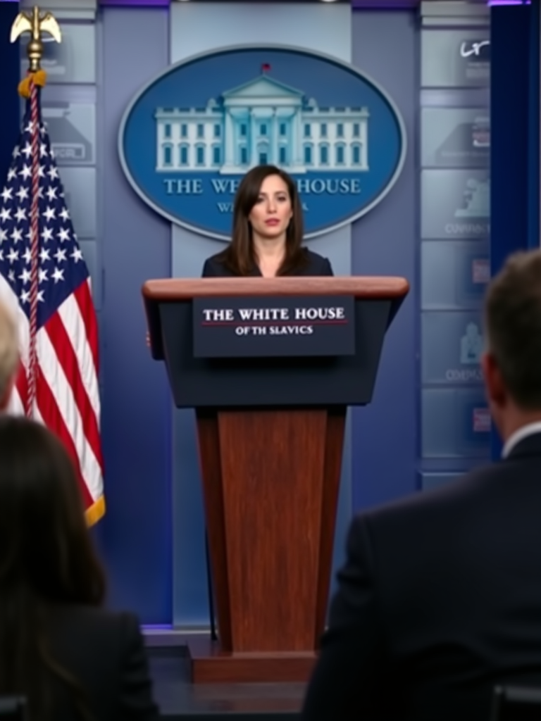a u.s. government press briefing with a white house spokesperson addressing concerns about ai-generated videos. the chyron reads: 'white house responds to PhotoAI.com backlash.' the spokesperson says, 'we take the threat of ai misinformation seriously and are evaluating new regulations.' journalists in the audience hold microphones, asking tough questions about ai censorship and free speech.