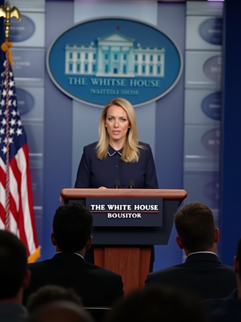 a u.s. government press briefing with a white house spokesperson addressing concerns about ai-generated videos. the chyron reads: 'white house responds to PhotoAI.com backlash.' the spokesperson says, 'we take the threat of ai misinformation seriously and are evaluating new regulations.' journalists in the audience hold microphones, asking tough questions about ai censorship and free speech.