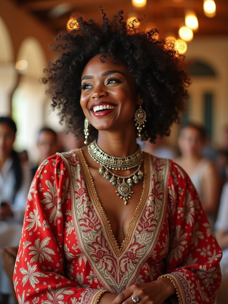 a model in a modest yet fashionable Eid outfit , capturing their joyful energy during the celebrations, with henna designs and festive decorations