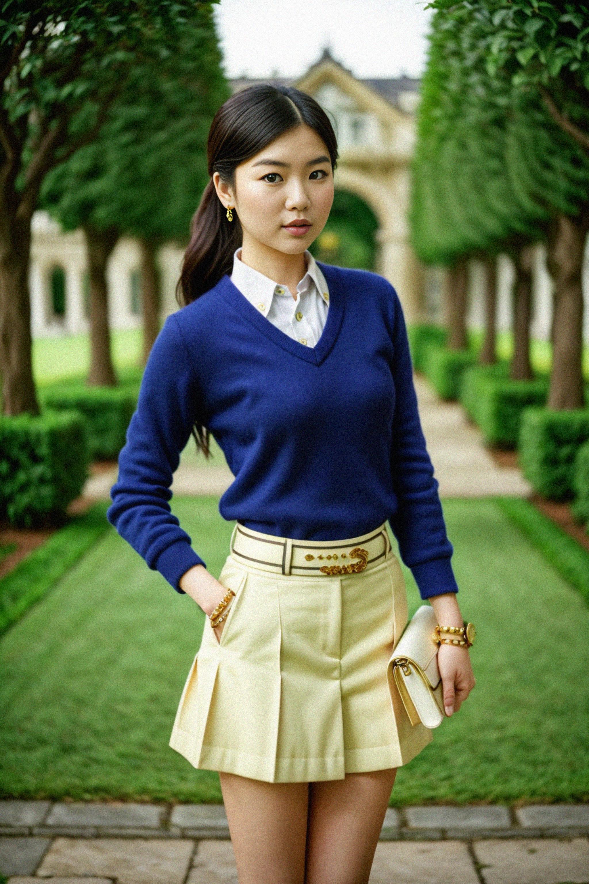 a model in preppy style, old money aesthetic, posh style, elite school stlye, luxurious style, gossip girl neo-prep style, ralph lauren style, country club style, ivy league style