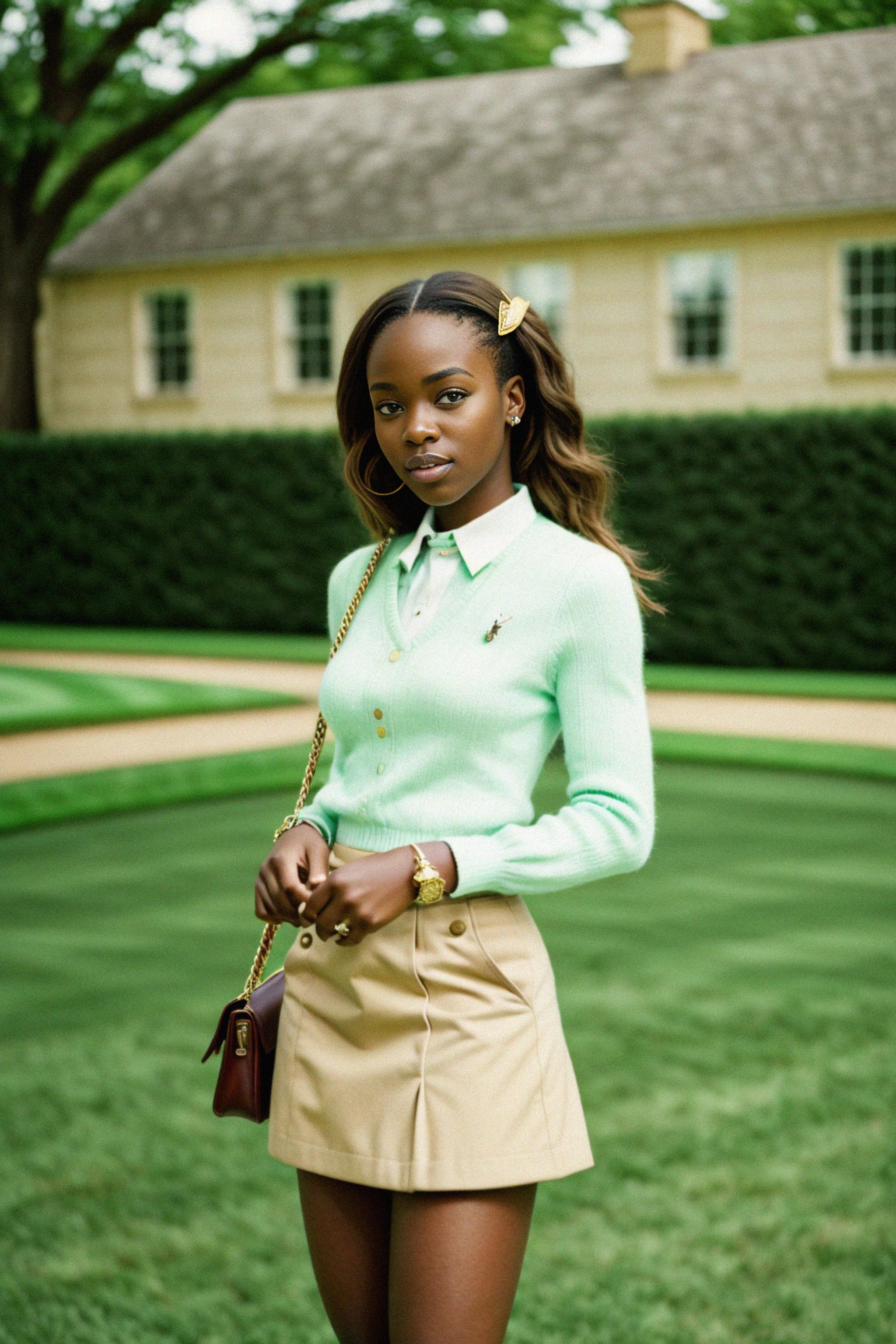 a model in preppy style, old money aesthetic, posh style, elite school stlye, luxurious style, gossip girl neo-prep style, ralph lauren style, country club style, ivy league style