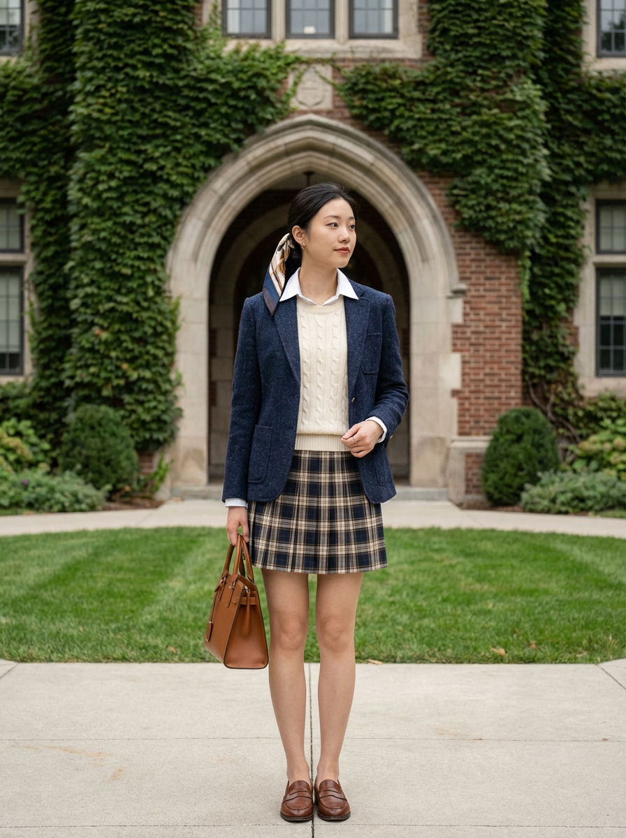 a model in preppy style, old money aesthetic, posh style, elite school stlye, luxurious style, gossip girl neo-prep style, ralph lauren style, country club style, ivy league style