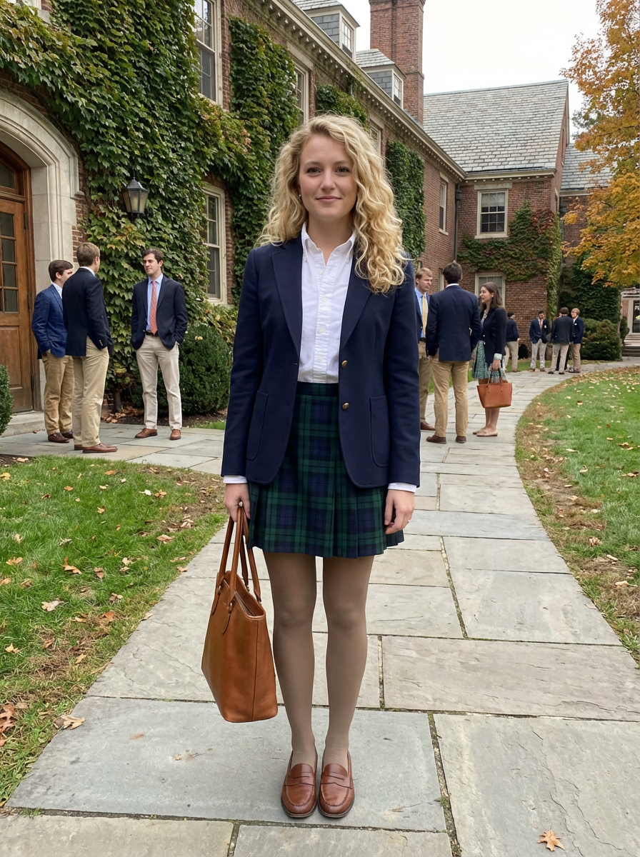 a model in preppy style, old money aesthetic, posh style, elite school stlye, luxurious style, gossip girl neo-prep style, ralph lauren style, country club style, ivy league style