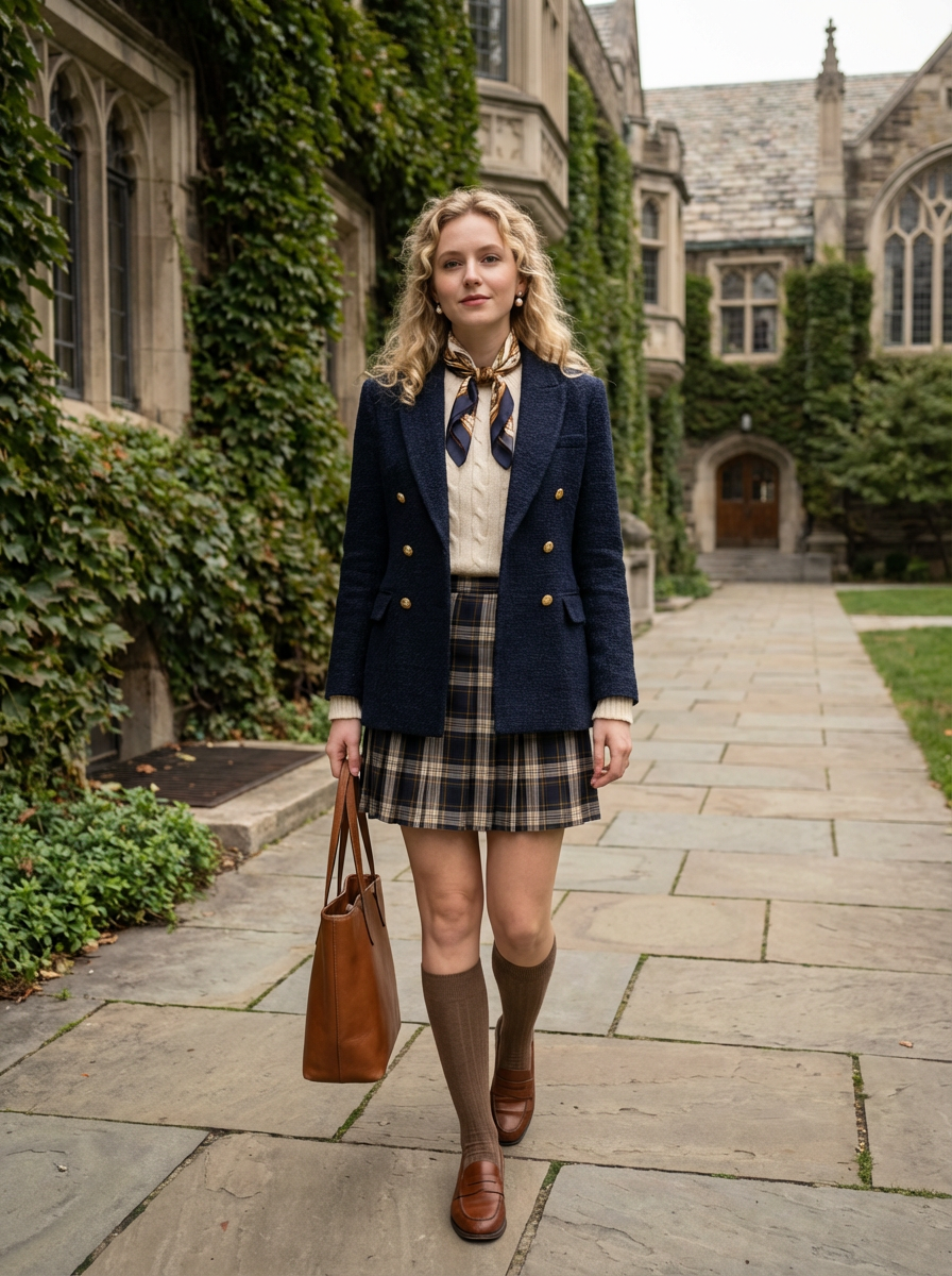 a model in preppy style, old money aesthetic, posh style, elite school stlye, luxurious style, gossip girl neo-prep style, ralph lauren style, country club style, ivy league style