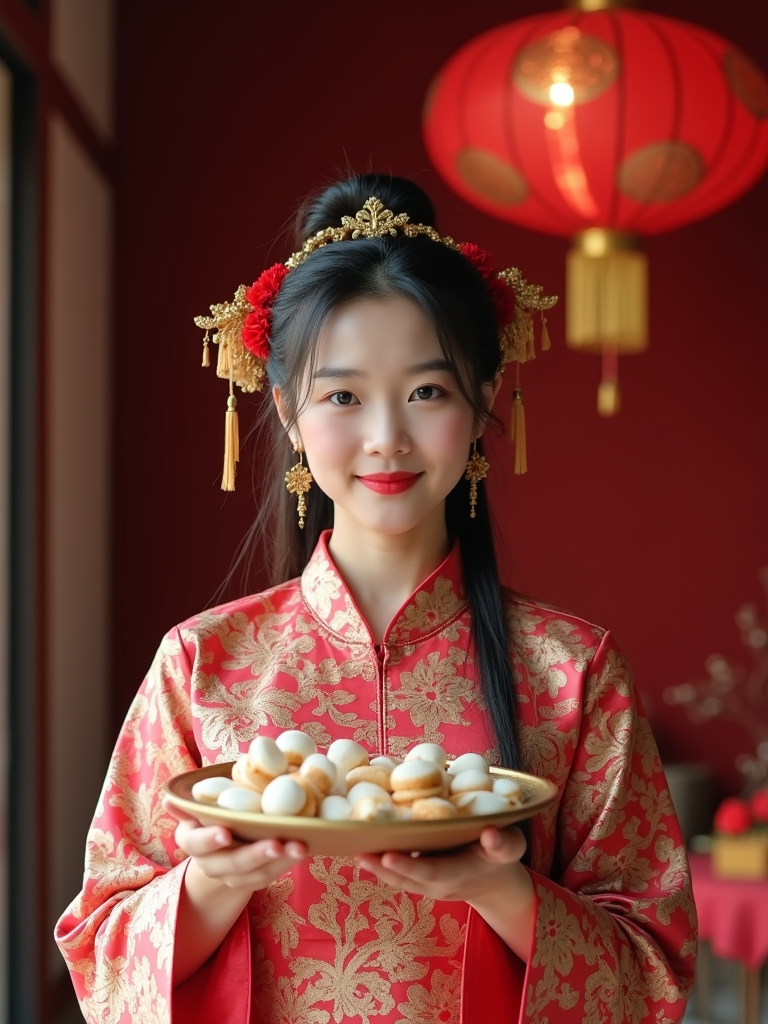 a model in traditional attire during Eid, sharing homemade sweets with family , capturing the generous and community spirit of the holiday