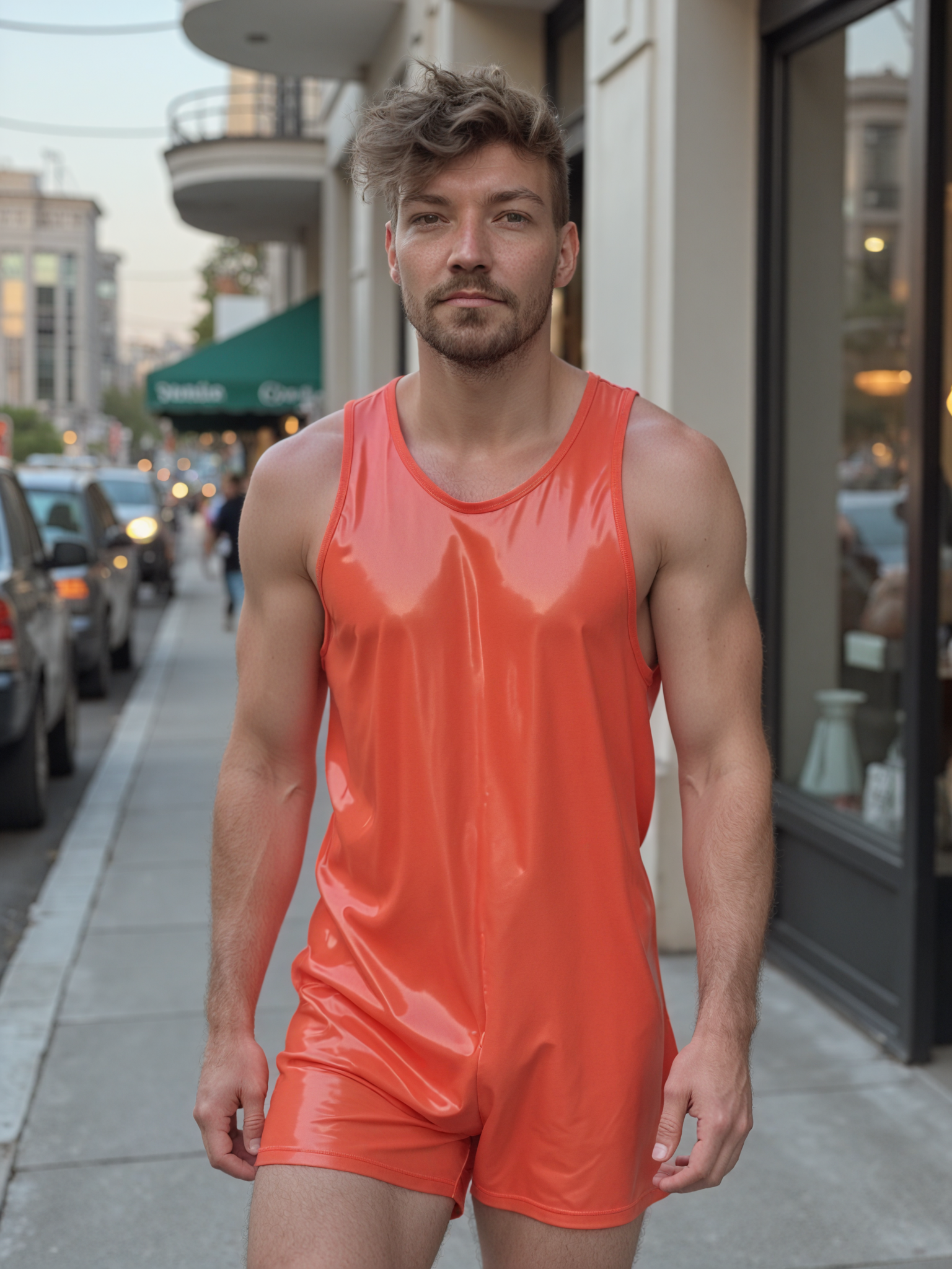 a model wearing sexy (pvc latex lingerie) standing in front of luxury design villa