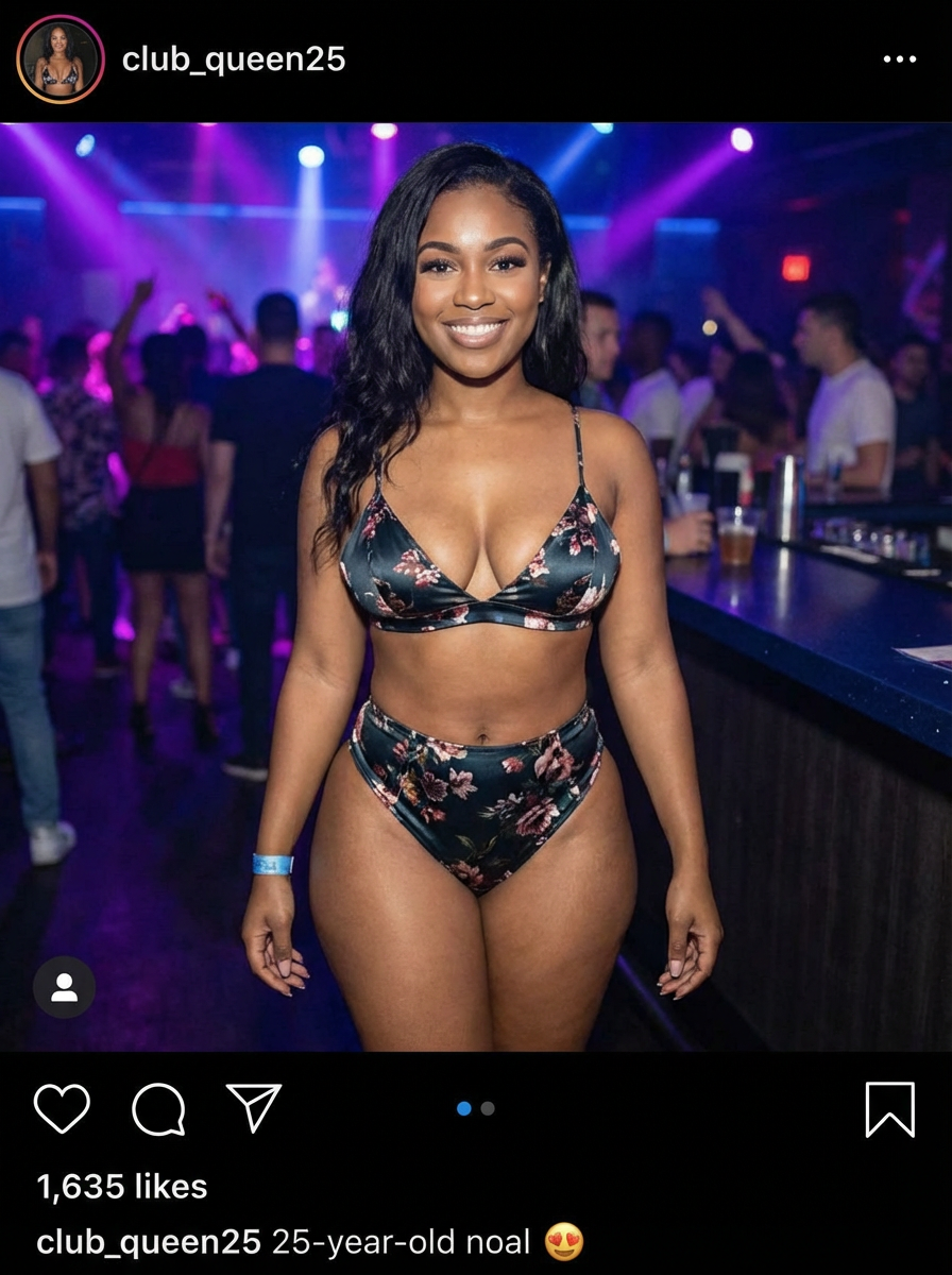 a model wearing silk floral skin tight bikini in night club, instagram photo, instagram, hourglass figure,