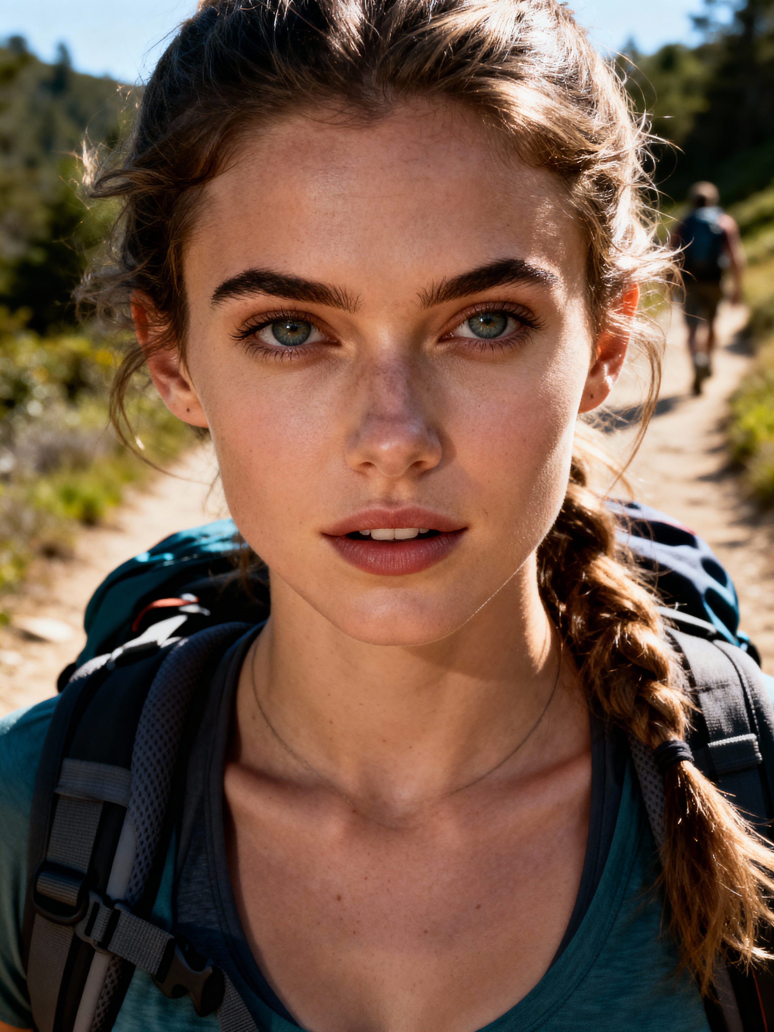 adventurous feminine model taking a casual hike in a nearby nature trail