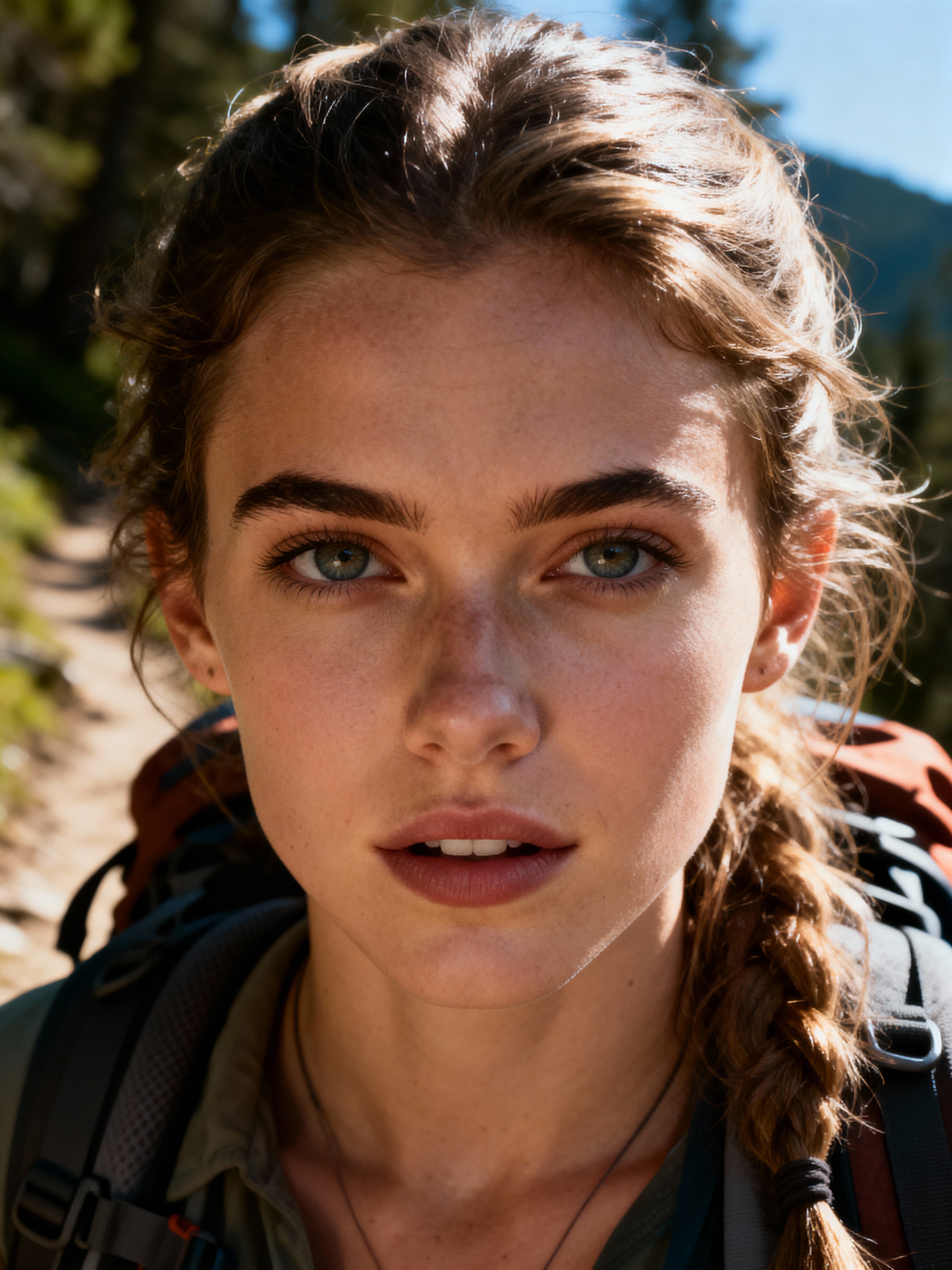 adventurous feminine model taking a casual hike in a nearby nature trail