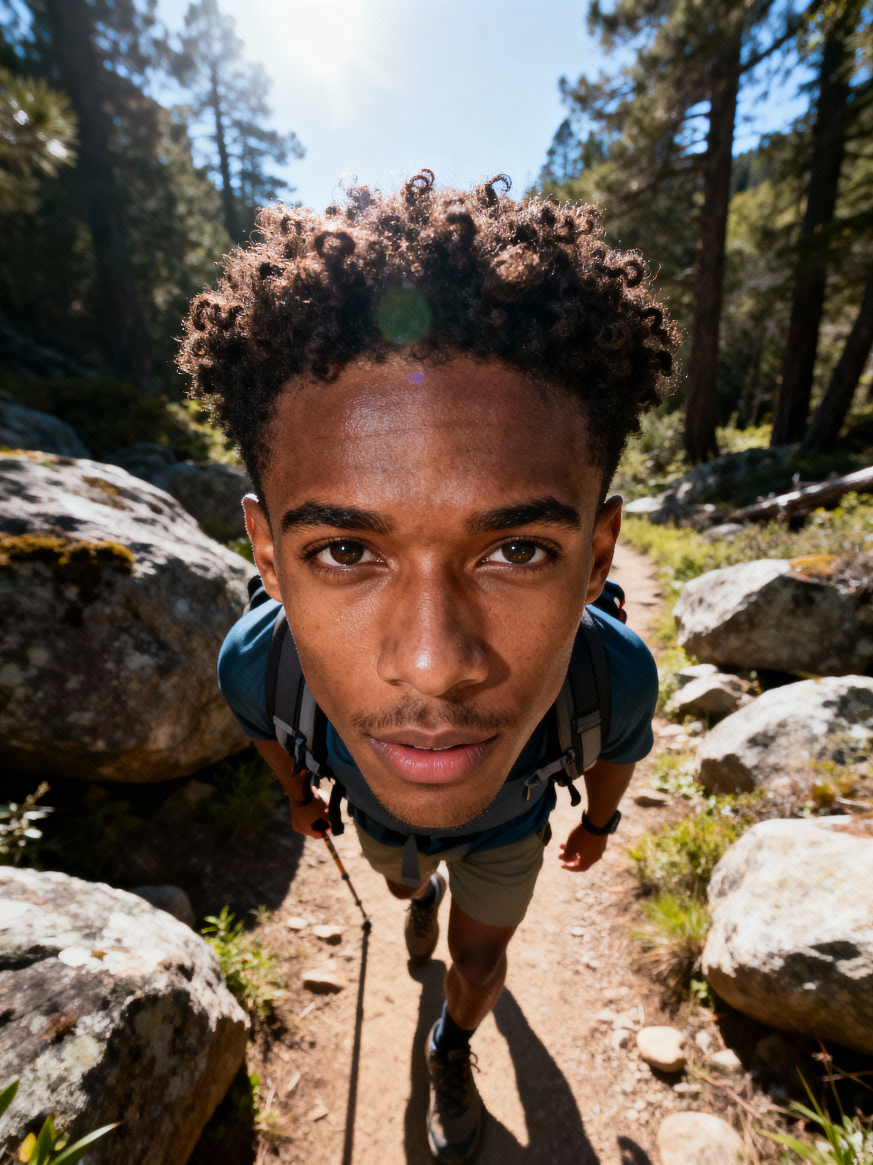 adventurous masculine model taking a casual hike in a nearby nature trail