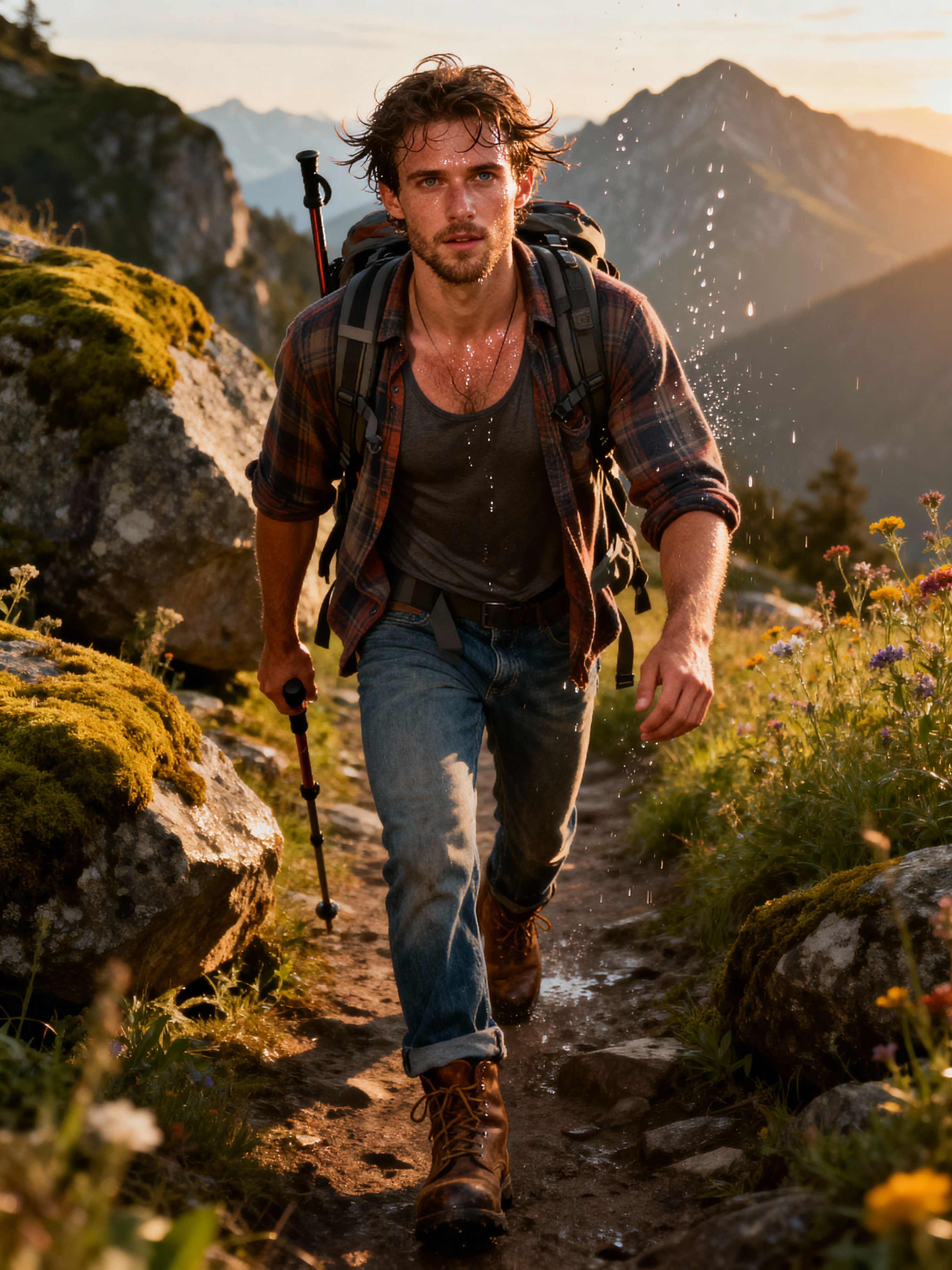 adventurous masculine model taking a casual hike in a nearby nature trail