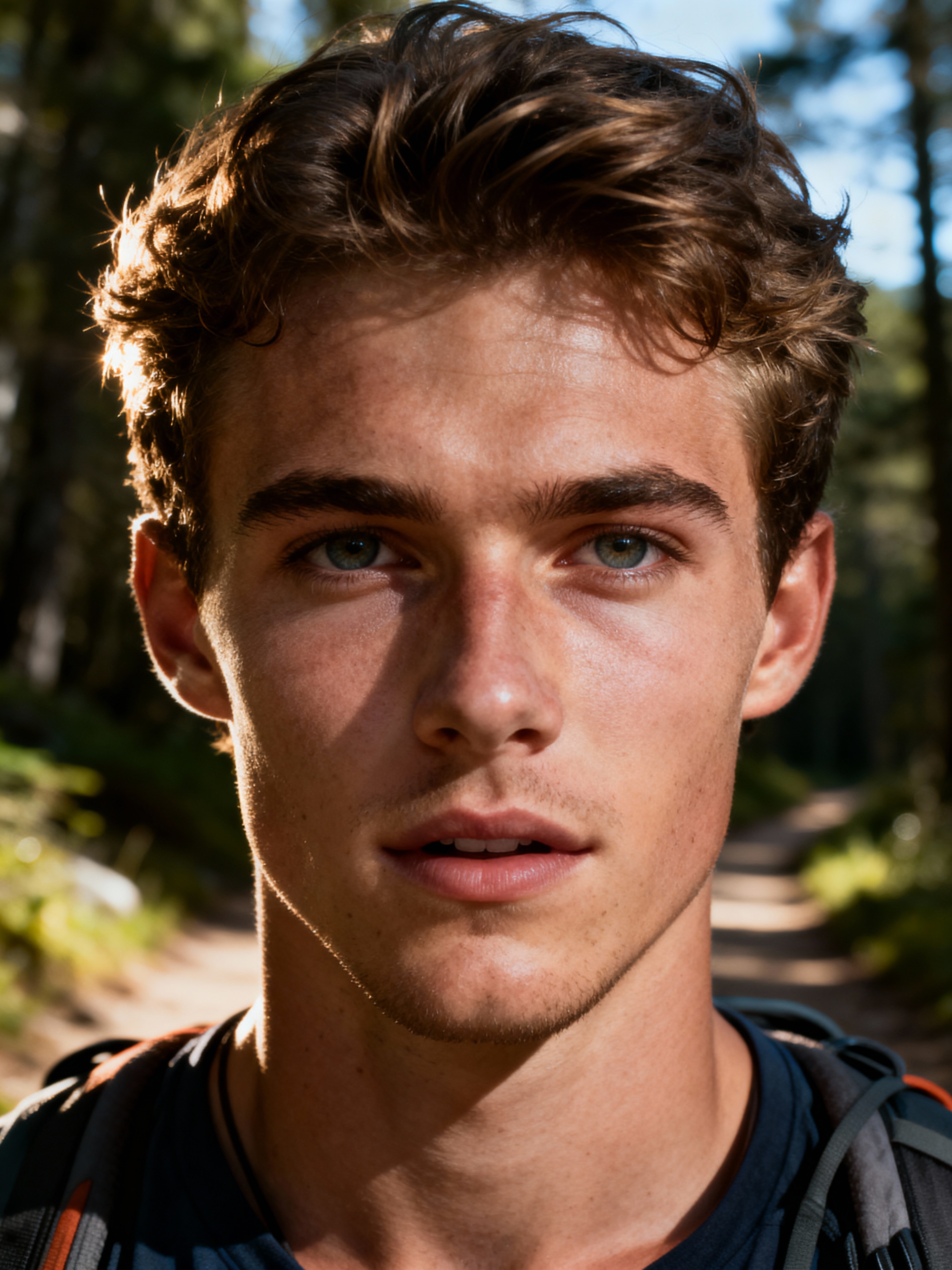 adventurous masculine model taking a casual hike in a nearby nature trail