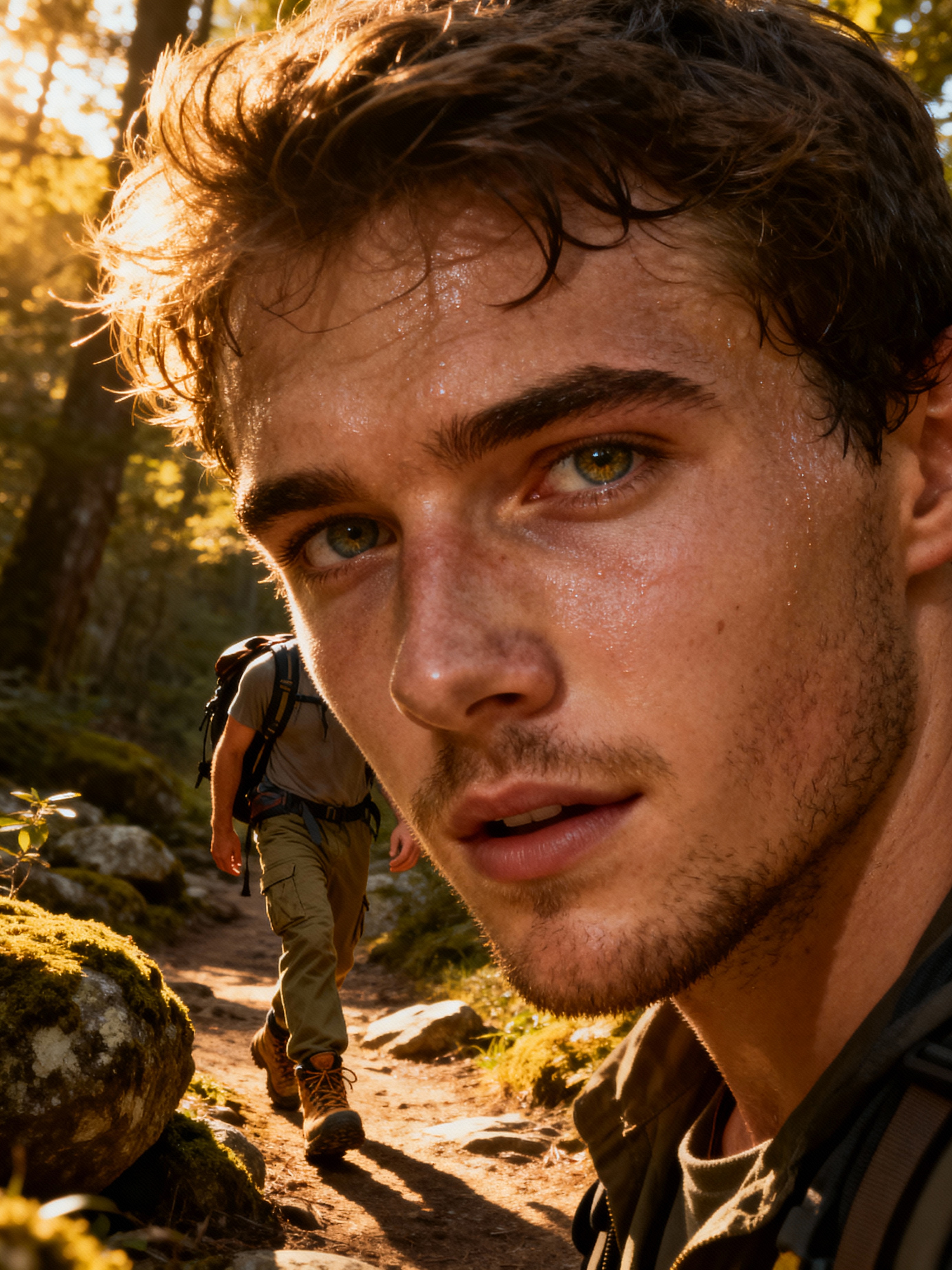 adventurous masculine model taking a casual hike in a nearby nature trail