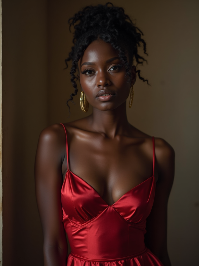 an alluring feminine model dressed in elegant evening wear