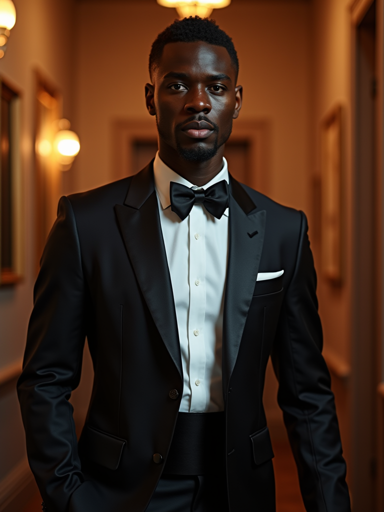 an elegant masculine model attending a formal event